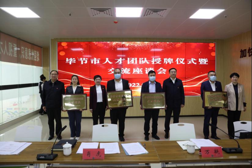 会上,肖虎、令狐荣锋为毕节市“人才之家”揭牌并为金沙酒业、新型煤化工等人才团队授牌;与会人员参观并听取了毕节市“人才之家”建设情况介绍;郑荣宣读《关于对毕节市第五批补充申报人才团队进行命名的通知》。