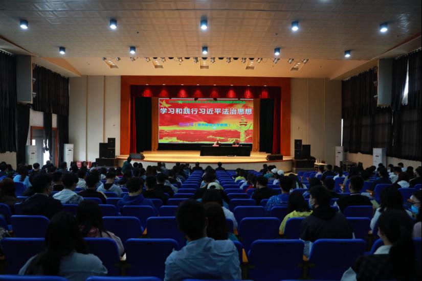 为深入贯彻落实习近平法治思想,落实教育部党组推进习近平法治思想进教材、进课堂、进头脑工作部署,进一步增强我校师生法治意识,教育引导广大青年师生尊法、学法、守法、用法,保障和促进学校安全稳定,为迎接党的二十大胜利召开营造良好氛围。5月17日下午,我校邀请省法治专家宣讲队成员、贵州师范大学包运成教授在学校正心礼堂为全校师生作法治宣传报告。我校党委书记令狐荣锋,党委副书记汤宇华,党委委员、副校长杨友昌,党委委员、宣传部(统战部)部长夏鲲出席会议,各学院师生代表300余人参加报告会。会议由杨友昌主持。