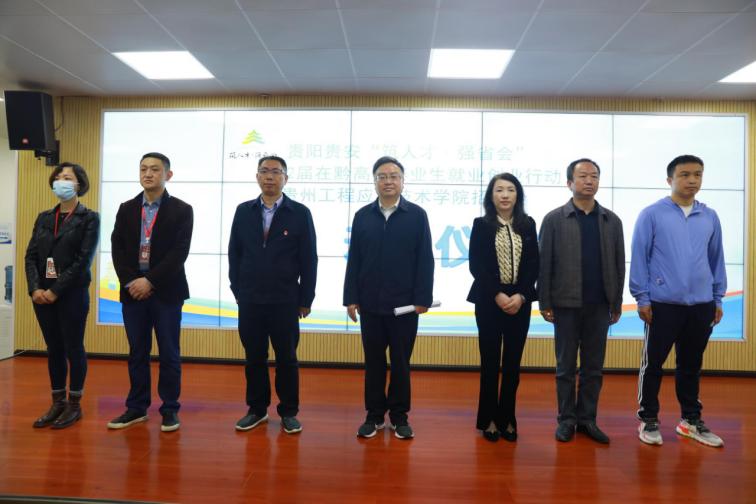 为深入贯彻党中央国务院“六保六稳”决策部署,抢抓新国发二号文件重大机遇,吸引更多在黔高校毕业生到贵阳贵安就业创业,推动人才“强省会”,5月27日上午,贵阳贵安“筑人才·强省会”2022届高校毕业生就业创业行动贵州工程应用技术学院招聘会在我校创新创业园二楼举行。贵阳市政协副主席、民建贵阳市委主委、贵州大学生命科学学院院长喻理飞,贵阳市金融办党组书记、主任韩梅,贵阳市金融办党组成员、副主任陈薇,贵阳市政协人资环委办公室主任张劲松,我校副校长杨友昌,党委委员、宣传部(统战部)部长夏鲲出席启动仪式,各招聘单位负责人、学校相关部门负责人及在校毕业生共800余人参加。仪式由我校学生处副处长丁虹主持。