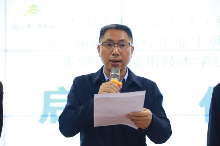 启动仪式上,杨友昌代表学校对各级领导、各用人单位的到来表示热烈欢迎和衷心感谢,并对学校基本情况作介绍。他指出,长期以来,我校始终秉承“艰苦创业、不断进取”的办学精神,坚持以勤学育人为根本,坚决贯彻国家教育部、省委、市委就业创业政策,落实就业创业一把手工程,构建了领导重视、中心统筹、院部为主、全员参与的工作格局,学校也将继续凝心聚力、广泛挖掘各类优质就业资源,举全校之力帮助毕业生实现更加充分、更高质量就业。他表示,此次线下招聘活动是贵阳贵安各企业为我校毕业生搭建的面对面双选平台,充分体现贵阳市人才工作领导小组、贵阳市金融办及社会各界对我校高校毕业生就业工作的关心与支持。他希望,同学们转变观念、珍惜机会、积极应聘,把自己所学的知识、练就的本领、优良的作风全面展现出来,选择适合自身职业发展的岗位,实现毕业生与用人单位的双赢。