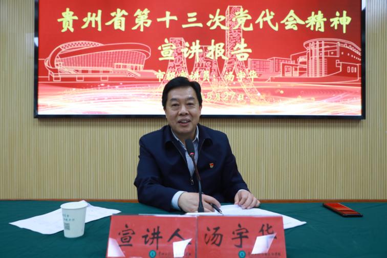 为深入学习宣传贯彻省第十三次党代会精神,切实把广大党员干部和全校教职员工的思想和行动统一到大会精神上来,奋力书写地方高等教育高质量发展的新篇章,5月27日下午,市委宣讲团成员、贵工程党委副书记汤宇华在学校新时代讲习所宣讲中国共产党贵州省第十三次代表大会精神,全校处级以上干部 、各学院教工党支部书记、学生党支部书记及学生代表参加。
