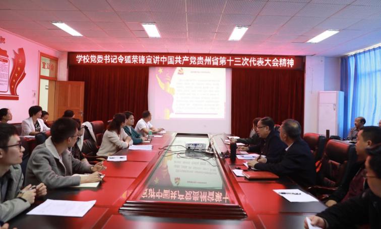 为深入学习贯彻省第十三次党代会精神,5月30日,我校党委书记令狐荣锋在理学院会议室宣讲中国共产党贵州省第十三次代表大会精神。理学院全体处级干部、无课教职工到场聆听。