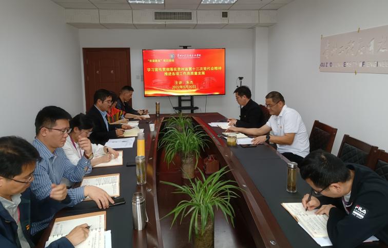为深入学习贯彻贵州省第十三次党代会精神,推动党代会精神入脑入心,把思想和行动统一到党代会精神上来。5月30日下午,学校党委委员、副校长朱杰同志以“学习宣传贯彻贵州省第十三次党代会精神,推动各项工作高质量发展”为题,为机关第一党支部全体同志上了一堂生动实效的党课。这是支部统筹推动党建提质、增效、升级,大力推进党建和业务深度融合,以高质量党建引领高质量发展的党日活动重要举措之一。机关第一党支部全体党员、预备党员、入党积极分子参加党课学习并结合工作实际进行了交流发言。