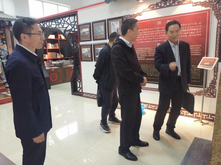 王荣猛先后参观了贵州省优秀校园文化育人基地——彝族文化博物馆,参观了“彝风”文创产品设计陈列室。在观看《卷洞桥彝汉文功德碑》时,王荣猛深入了解这块新发现的“民族团结碑”背后各民族团结一心、共同开发黔西北地区的感人故事,充分肯定了我校在优秀民族传统文化的创造性转化、创新性发展方面的成绩。