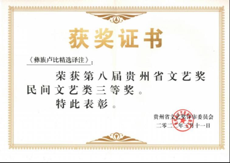 据悉,2018年,我校彝学研究院王明贵研究员的专著《彝族传统经籍文学研究》、文启扬助理研究员执行主编的《阿西里西之声》也曾荣获第七届贵州省文艺奖民间文艺奖三等奖。