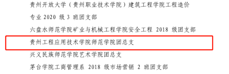近日,省人力资源社会保障厅、共青团贵州省委下发了《关于表彰贵州省54红旗团委团支部,贵州省优秀共青团员,贵州省优秀共青团干部的决定》,我校师范学院团总支获贵州省“五四红旗团支部”表彰。