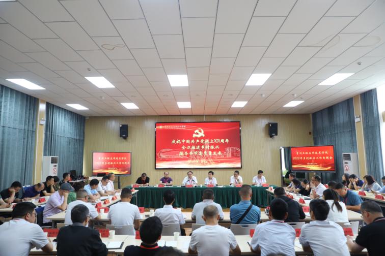 为庆祝中国共产党成立101周年,全力推进乡村振兴工作出成效、出实绩,为服务毕节高质量发展做出新的贡献,7月1日上午,我校在新时代讲习所召开“庆祝中国共产党成立101周年 全力推进乡村振兴 服务毕节高质量发展”专题会,听取各乡村振兴工作联系点上半年工作开展情况汇报,研究部署下半年乡村振兴工作。校党委书记令狐荣锋,党委副书记汤宇华,党委委员、副校长李琳,党委委员、副校长赵军,组织部部长陈兴才,党委委员、宣传部(统战部)部长夏鲲出席会议,各部门主要负责人,各学院党总支书记,学校选派参与乡村振兴工作人员参加会议,会议由汤宇华主持。