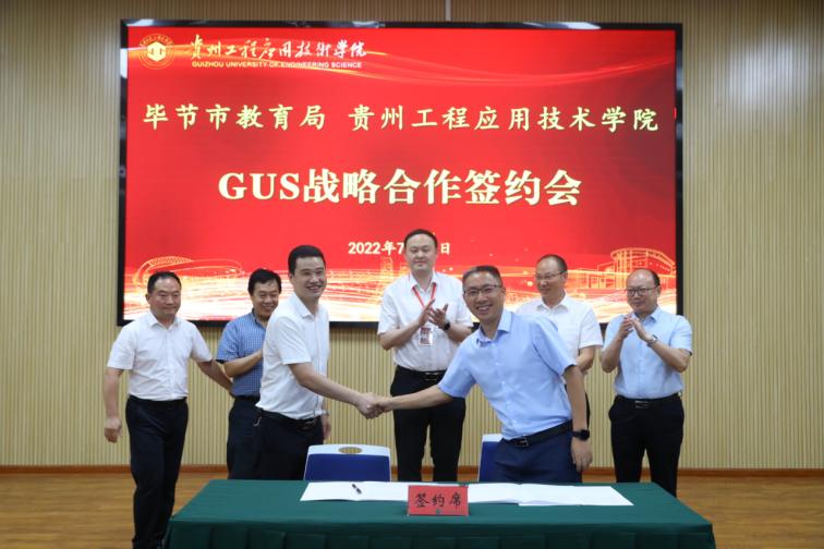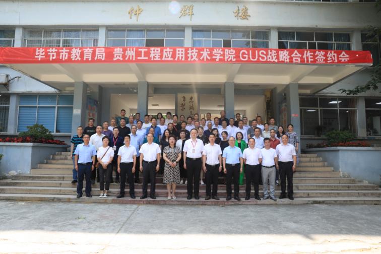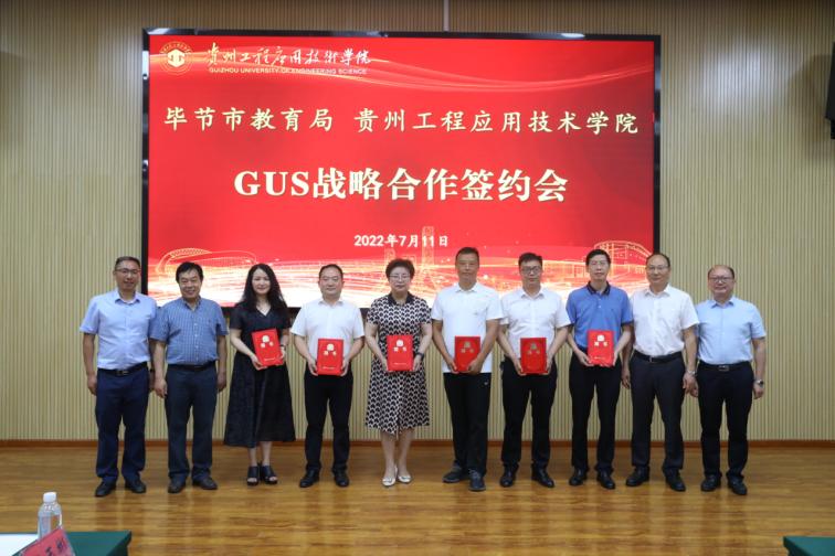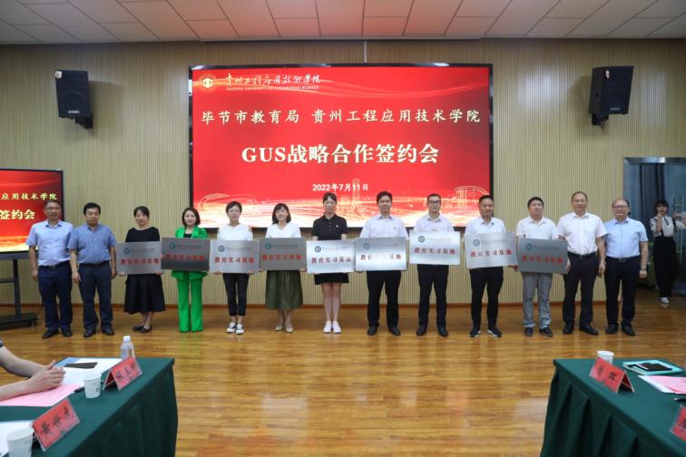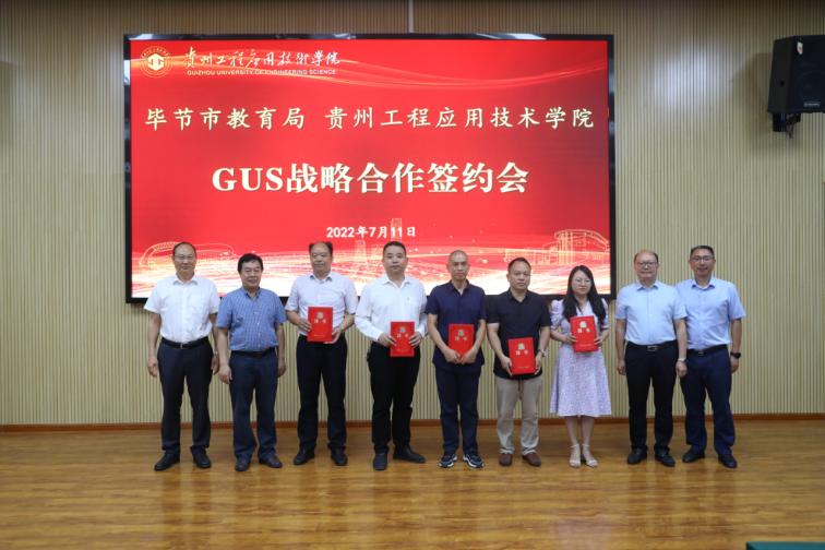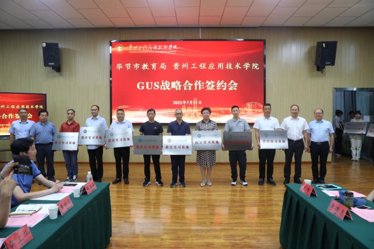 7月11日下午,我校与毕节市教育局签订G-U-S协同育人战略合作协议,签约仪式在我校新时代讲习所举行,市委教育工委委员、市教育局党组成员、副局长吴明来,我校校长张嗣杰,党委副书记汤宇华、向贤礼,副校长李琳、杨友昌出席仪式,30余所毕节市七星关区G-U-S协同育人基地领导、10余名毕节市名校长、省教学名师、我校特聘教授,市教育局及我校有关工作人员参加仪式,仪式由李琳主持。