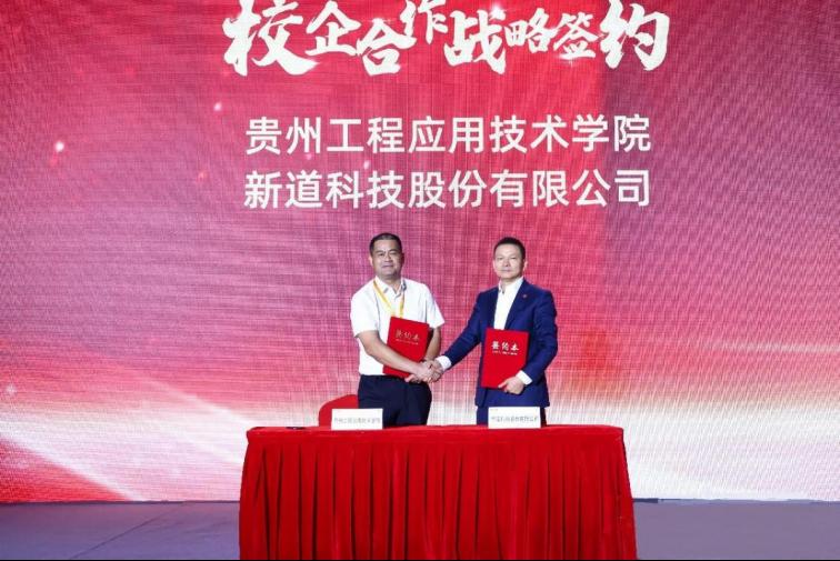 大会上,朱杰代表学校与新道科技股份有限公司、用友网络科技股份有限公司贵州分公司签订产业学院战略合作协议。朱杰与新道科技股份有限公司副总裁田鹏、新道西南大区总经理侯爱华、新道贵州省区总经理吴润琦、新道贵州省区校企合作经理何洪等就协议的具体执行进行了座谈。座谈中,朱杰介绍了学校的基本情况,并希望充分发挥校企各自优势,充分利用国发〔2022〕2号文件带来的重大机遇和重大政策红利,重点围绕我校经管类学科专业建设的需要,不断创新人才培养模式、提升专业建设质量,共同开发校企合作课程、打造实习实训基地、建设高水平教师队伍、打通实习就业通道、完善管理体制机制,助推高等教育事业高质量发展。