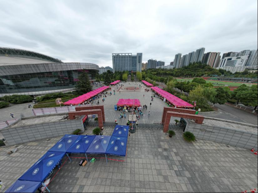 迎新现场,明德广场中央各处分布着欢迎横幅、特色拍照板等各具特色的迎新装饰,在学长学姐的引导下,同学们有序办理入学手续、体检、并与可爱吉祥物合影、参观校园各个景观。工作人员和志愿者们热情地迎接新生,为新生答疑解惑,帮助新生运送行李,协助办理报到手续。现场人文气氛浓郁,为新生开启大学生活留下了美好的记忆。