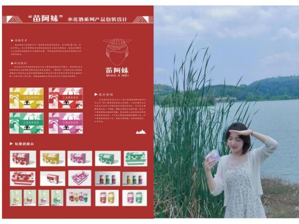 作品:《“苗阿妹”水花酒系列产品包装设计》作者:唐晶晶