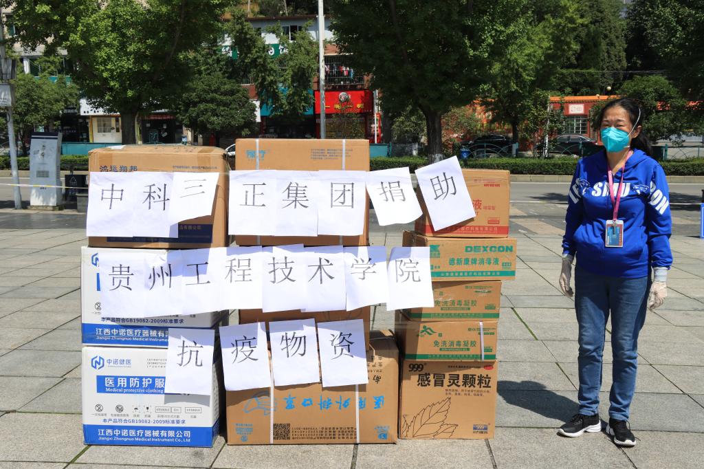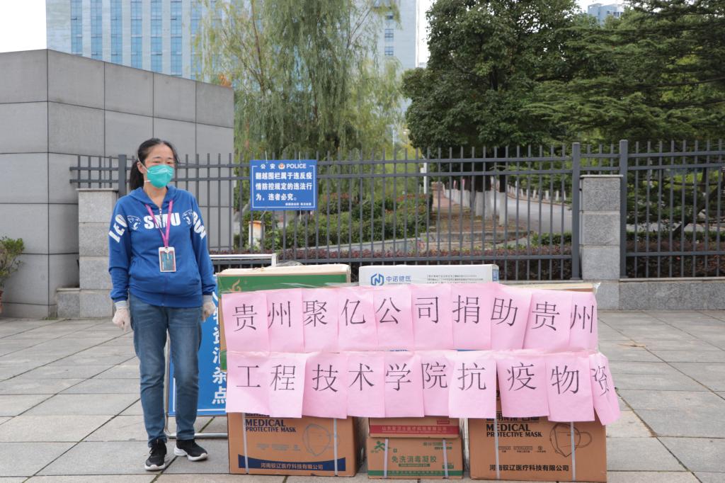 贵州聚亿公司购买了2000个N95口罩、60瓶免洗凝胶、100瓶100ml酒精、50个面罩、50双鞋套、50件防护服等物资捐赠到我校抗疫一线,尽显了企业的责任与担当。