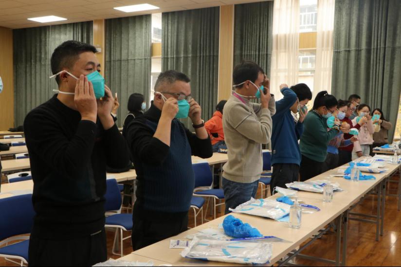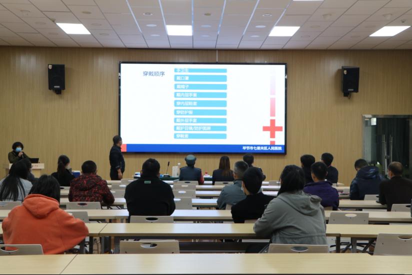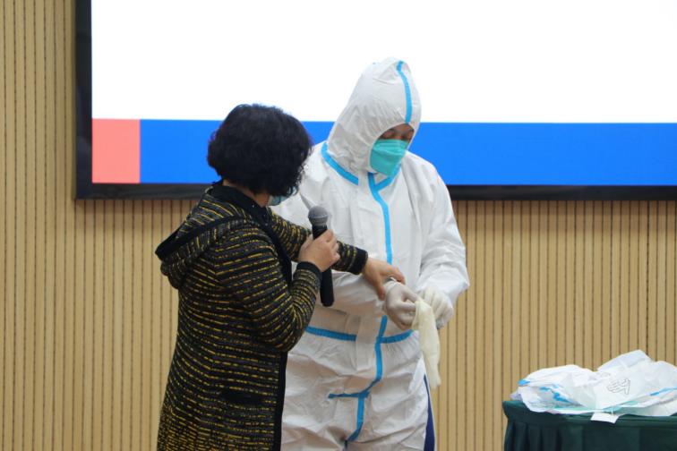 会上,七星关区疾控中心医生雷韵详细展示了医用防护口罩、一次性帽子、手套、防护服、护目镜的正确穿方法。七星关区疾控中心科长向英从“物品准备”“操作者要求”“穿顺序”三个方面详细介绍了防护服的正确使用咽拭子标本采集基本要求、采集流程、采集方法、注意事项等环节进行介绍,确保参训人员了解操作流程,熟悉核酸检测采样各项重点工作步骤。