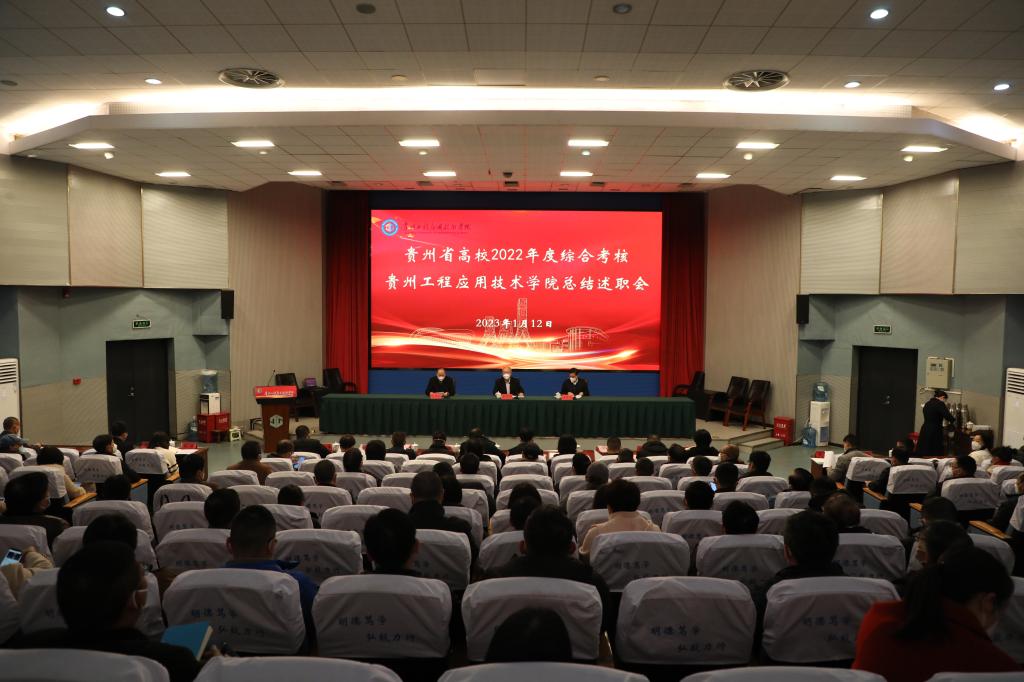 1月12日,省考核办考核组到我校开展贵州省普通高校2022年年终实地考核工作。上午九点,在身修讲堂召开贵州省普通高校2022年年终实地考核总结述职会。考核专家组组长、遵义医学院原党委书记石京山,考核组成员贵州产业技术发展研究院产业项目研究部工作员郭霖,高校考核办正处级干部黄路,贵州师范大学数学科学学院党委书记孙谦,遵义医科大学公共卫生学院党委书记张在金,贵州商学院党委组织部副处级组织员张艳丽,贵州装备制造职业学院组织部副部长赵洋,贵州中医药大学党委组织部组织科科长武静,铜仁职业技术学院教学工作部副部长、双高办副主任侯宇,以及贵州工程应用技术学院党委副书记汤宇华、向贤礼,党委委员、副校长李琳,纪委书记郭永红,党委委员、副校长杨友昌、朱杰、赵军,党委委员、宣传部(统战部)部长夏鲲,各部门主要负责人、各学院党政主要负责人,学校考核办工作人员参加会议。向贤礼主持会议。