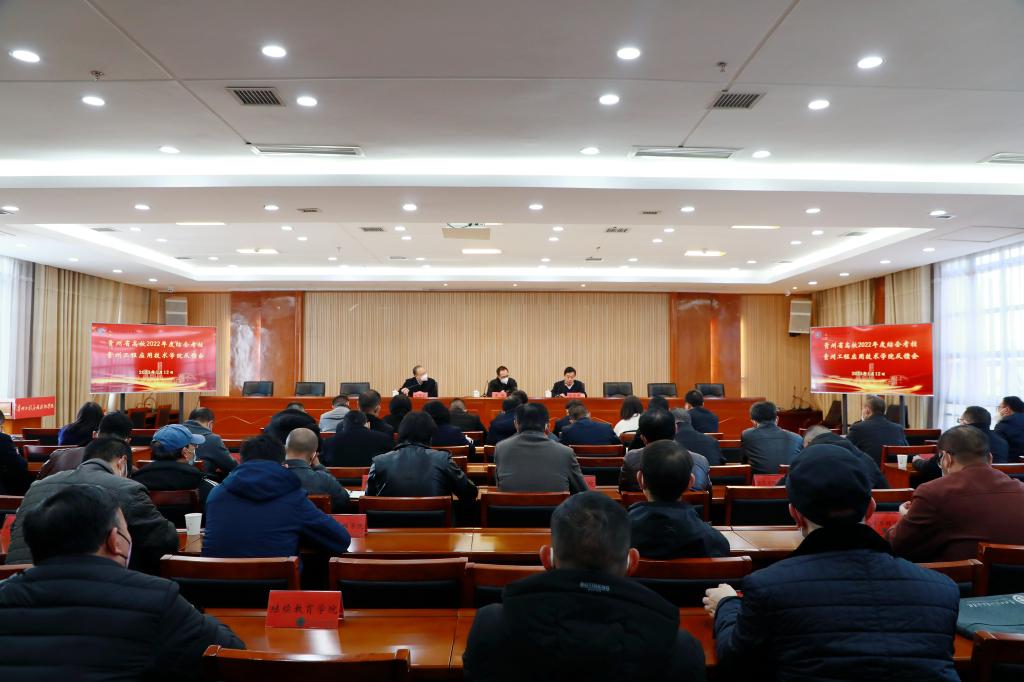 下午,在西区综合楼1202会议室召开贵州省普通高校2022年年终实地考核工作反馈会。考核组专家,贵工程校领导班子成员,各部门主要负责人,各学院党政主要负责人,学校考核办工作人员参加会议。向贤礼主持会议。
