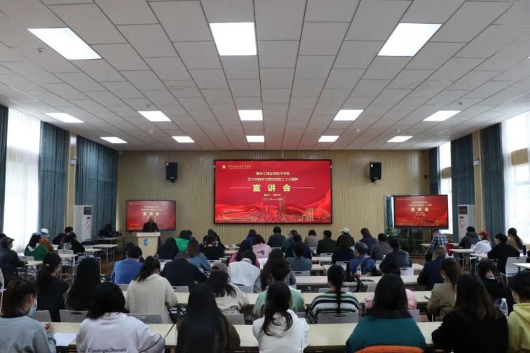 11月4日下午,校党委副书记汤宇华在新时代讲习所为艺术学院师生开展党的二十大精神宣讲。报告会由艺术学院党总支书记龚文富主持。