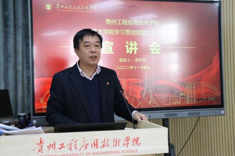 报告会上,汤宇华紧密围绕如何把党的二十大精神学懂、弄通、做实三个问题展开宣讲。从党的二十大的主题和主要成果、过去五年的工作和新时代十年的伟大变革、习近平新时代中国特色社会主义思想、国内外形势作出了深入浅出地阐述。他通过联系实际具体事例,让同学们深刻了解到新时代十年间所面临的局面以及所取得的辉煌,深刻体会当今生活的来之不易,知晓当今中国艰巨却前途光明的使命任务。他指出,学习党的二十大精神是当前和今后的一个主要政治任务,他要求学生从总书记的报告当中去认真学习党的二十大精神的核心要义,坚定不移跟党走,做有理想有担当的有志青年;要求老师们时刻落实好立德树人的根本任务,培养合格的建设者和可靠的接班人,找准好自己的职责定位。现如今中国已经迈上了新的征程,正建设社会主义现代化,全校师生要高举中国特色社会主义伟大旗帜,牢记初心与使命,深入贯彻学习党的二十大精神,为实现中华民族的伟大复兴而努力奋斗。