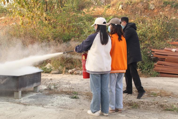 李军做动员讲话;保卫处陈礼印进行消防知识培训和灭火器实操示范。在师生实操环节,同学老师们都积极参与演练,按照正确灭火步骤和方法将大火迅速扑灭。演练结束后,马克思主义学院21思政1班的杨诗语表示,这次消防实操演练不仅提高了自己的消防意识,还帮助她掌握了灭火自救的能力。