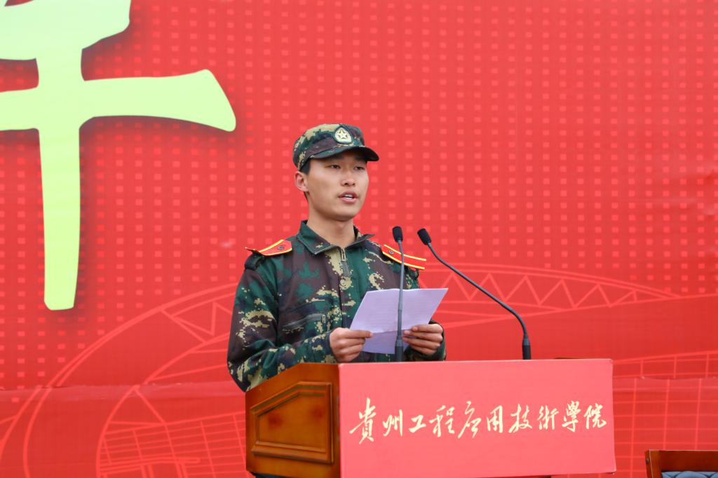 张嗣杰代表学校党委、行政向长期以来大力支持和指导我校国防教育工作的毕节军分区、毕节市武警支队、七星关区武装部表示衷心感谢,向来自祖国各地的2362名22级新生致以迟来的问候,并肯定了全校师生在疫情防控工作中的坚守和付出。他表示,党的二十大胜利闭幕,习近平总书记在党的二十大报告中勉励广大青年要坚定不移听党话、跟党走,怀抱梦想又脚踏实地,立志做有理想、敢担当、能吃苦、肯奋斗的新时代好青年,让青春在全面建设社会主义现代化国家的火热实践中绽放绚丽之花。他结合习近平总书记在党的二十大报告中的讲话精神发表讲话,指出军训是接受国防教育的基本形式,也是22级新生进入大学的第一门课程,在军训中同学们充分发扬爱国主义精神和革命英雄主义精神,有效掌握了基本军事知识和技能,塑造了强健的体魄和坚强乐观的品格;增强了吃苦耐劳,艰苦奋斗的坚强毅力和集体主义精神;养成了团结互助的学风和优良作风,增强了整体国家安全观和现代国防观念。他寄语广大同学们,希望大家坚守初心、志存高远,扎根毕节红色热土,肩负起时代使命和责任;珍惜时间,脚踏实地,以“衣带渐宽终不悔”的定力,为大好青春年华增加足够重量;进德修业,涵养人格,担当好贵工程人的社会角色,在毕节建设贯彻新发展理念示范区、推动高质量发展的历史征程中与党和国家、与人民携手并进,不负青春、不负韶华。