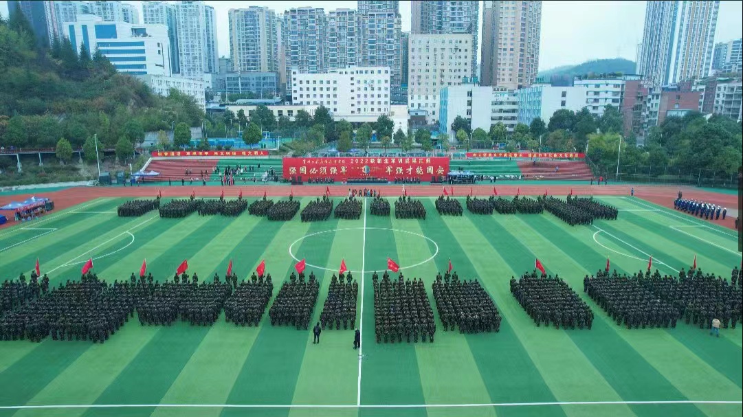 飒爽英姿展风采,意气风发致青春。11月18日上午,我校2022级新生军训成果汇报会在绣山田径场隆重举行。毕节军分区司令员、大校张东湖,毕节军分区战备动员处处长、上校陈超 ,七星关区人民武装部部长、上校覃有川,我校党委副书记、校长张嗣杰,党委副书记汤宇华,向贤礼 ,党委委员、副校长李琳 ,党委委员、纪委书记郭永红,党委委员、副校长赵军,党委委员、组织部部长陈兴才,党委委员、宣传部(统战部)部长夏鲲以及学校各综合职能部门主要负责人、各学院负责人、学生科长、团总支书记、全体辅导员老师、新生班班主任及2022级全体参训新生参加大会。大会由向贤礼主持。