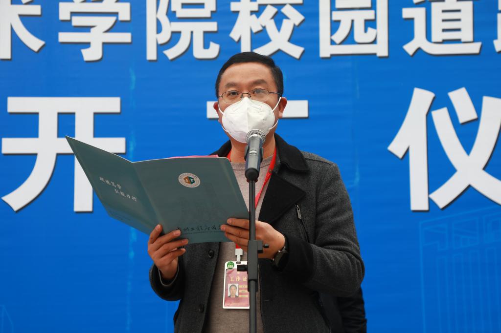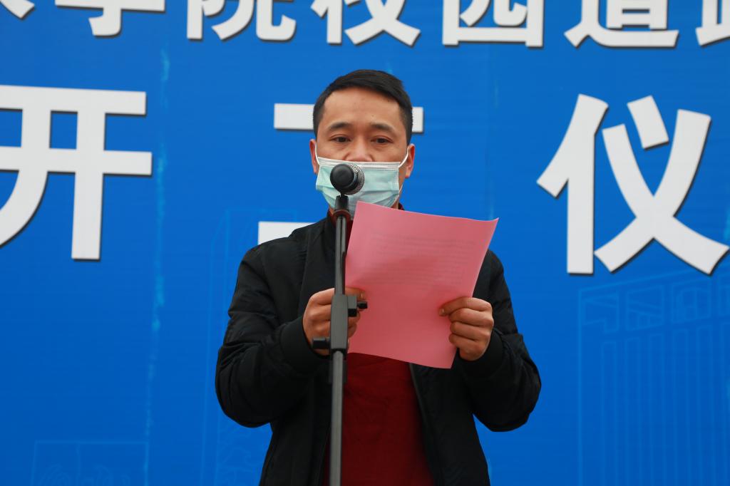 赵军在讲话中指出,我校与毕节市公路建设养护有限公司开展校企合作产教融合,是学校深入推进同地方企事业单位合作,服务学校本科教育教学取得成果之一,是在全校掀起学习宣传贯彻落实党的二十大精神的热潮中,学校党委高位推动,持续巩固拓展党史学习教育成果,是坚持党史学习教育常态化长效化,坚持“我为师生办实事”常抓不懈,解决师生关心关切,服务教育强国战略、人才强国战略取得的一项重要成果。他表示,毕节市公路建设养护有限公司援建我校校园道路沥青混凝土铺面工程,将给师生提供更加美丽的校园环境,此次公司援建学校校园道路基础设施升级改造,充分体现了毕节市公路建设养护有限公司履行国有企业公益职能和社会责任,并宣布了“毕节市公路建设养护有限公司援建贵州工程应用技术学院校园道路沥青混凝土铺面工程”开工。