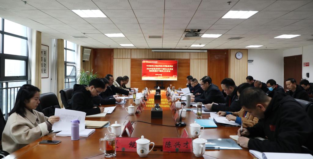2月24日,我校召开2022年度党员领导干部民主生活会暨巡视整改专题民主生活会。省委第八督导组副组长杨国平、市委第九督导组组长喻石一行莅会全程指导,我校校党委书记令狐荣锋,校党委副书记、校长张嗣杰,党委副书记汤宇华、党委委员、纪委书记郭永红,党委委员、副校长杨友昌、朱杰、赵军,党委委员、组织部部长陈兴才,党委委员、宣传部(统战部)部长夏鲲参加会议,学校组织部、党(校)办、纪委等部门负责同志等列席会议。会议由校党委书记令狐荣锋主持。