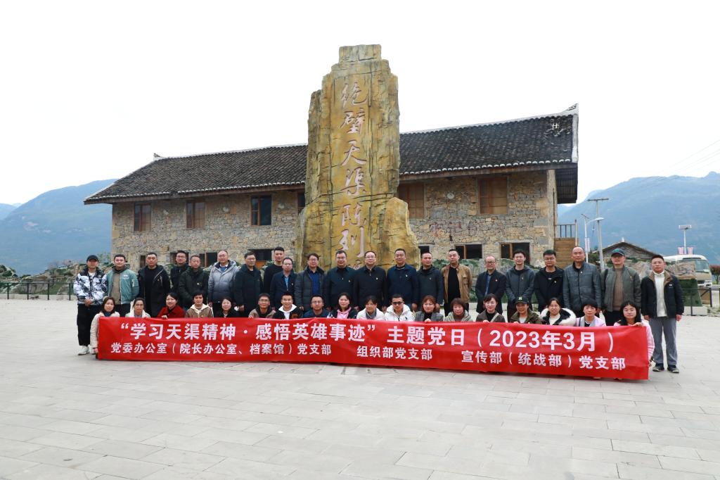 贵工程联合党支部全体党员先后参观了生机镇高流绝壁天渠、天渠陈列馆等地,重温峥嵘岁月,探寻红色足迹。在现场讲解员声情并茂的讲述中,一幅幅图片,在墙壁上向前延伸,一个个修渠的场景出现在眼前,参观人员仿佛走进深邃的时光隧道,重新见证着生机镇干部群众在千岩万壑中“从山顶吊着绳索凿炮眼”的艰难修渠历程,感受着老一辈人无私奉献、不怕牺牲的高尚品质。观看完天渠宣传片后,全体党员在陈列馆前重温入党誓词,向绝壁天渠所传承的“为有牺牲多壮志,敢教日月换新天”的精神致敬。