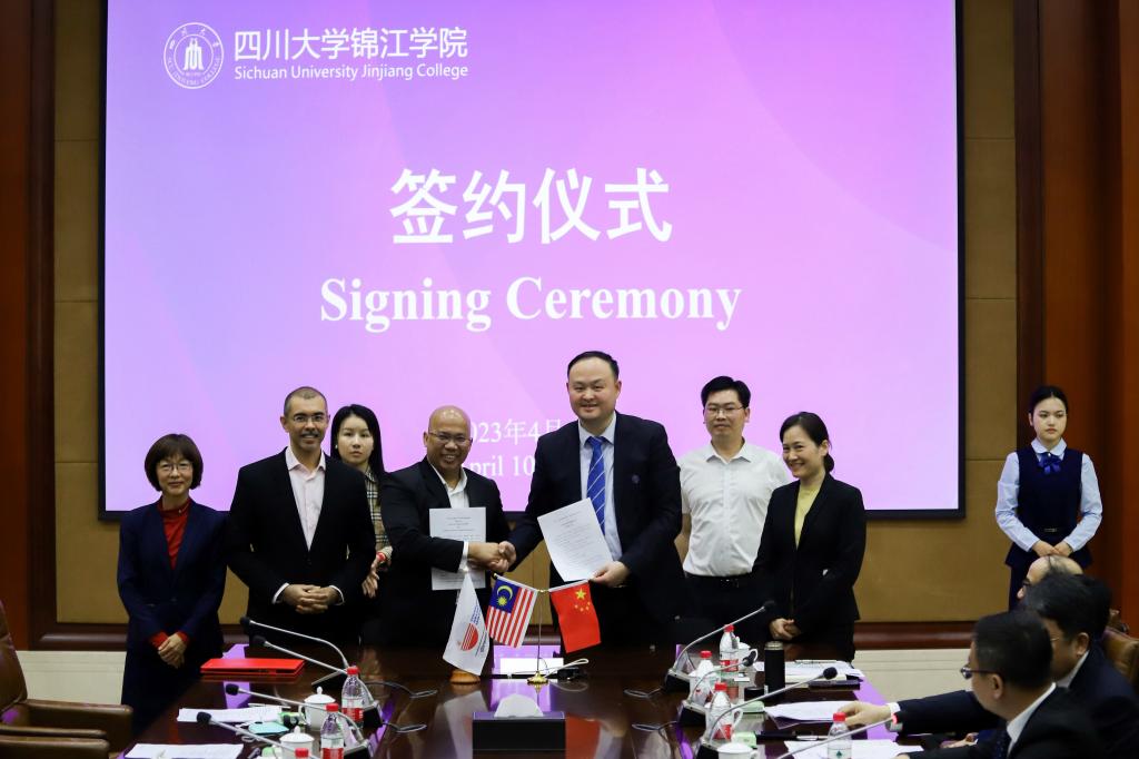 会上,四川大学锦江学院校长晏世经致欢迎辞,我校张嗣杰校长及各有关高校代表分别作了发言,张嗣杰代表学校与马来西亚国家能源大学校长诺尔·阿祖安·宾·阿布·奥斯曼签署合作协议。此次与国能大学签约,两校将在教师互派、科研合作、学生短期交换、联合培养等多方面开展合作,进一步拓宽学校教育对外开放渠道。