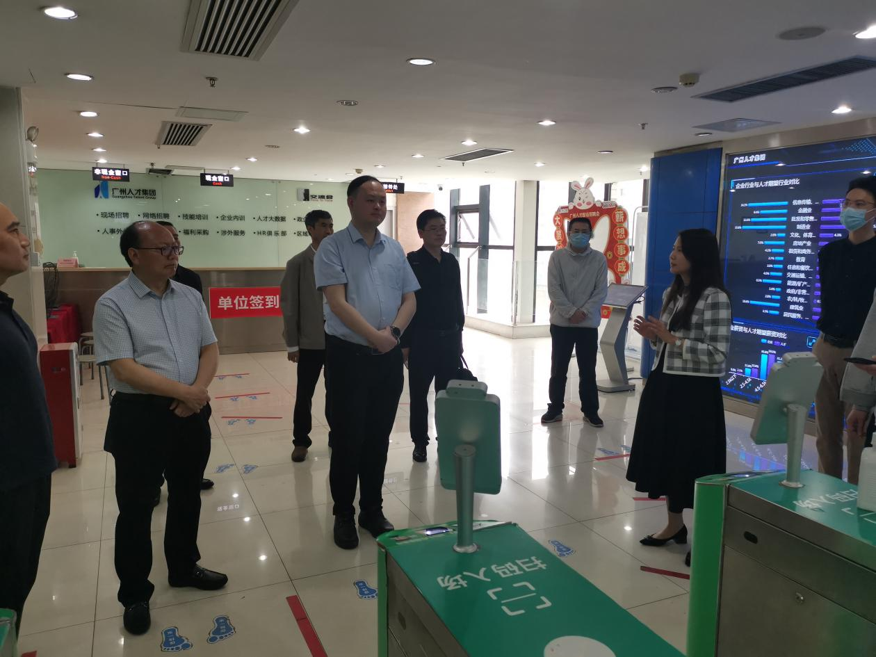 在广州南方人才集团,张嗣杰一行实地考察了广州人才集团配置中心招聘会现场,详细了解和体验招聘会信息化系统,并与广州南方人才资讯科技有限公司召开交流座谈会,围绕就业平台搭建、就业渠道拓展、就业培训、人才引进及人才培养等工作进行深度交流,为学校进一步做好毕业生高质量充分就业、校企合作产教融合,建好用好创新创业园等工作集聚优质资源。
