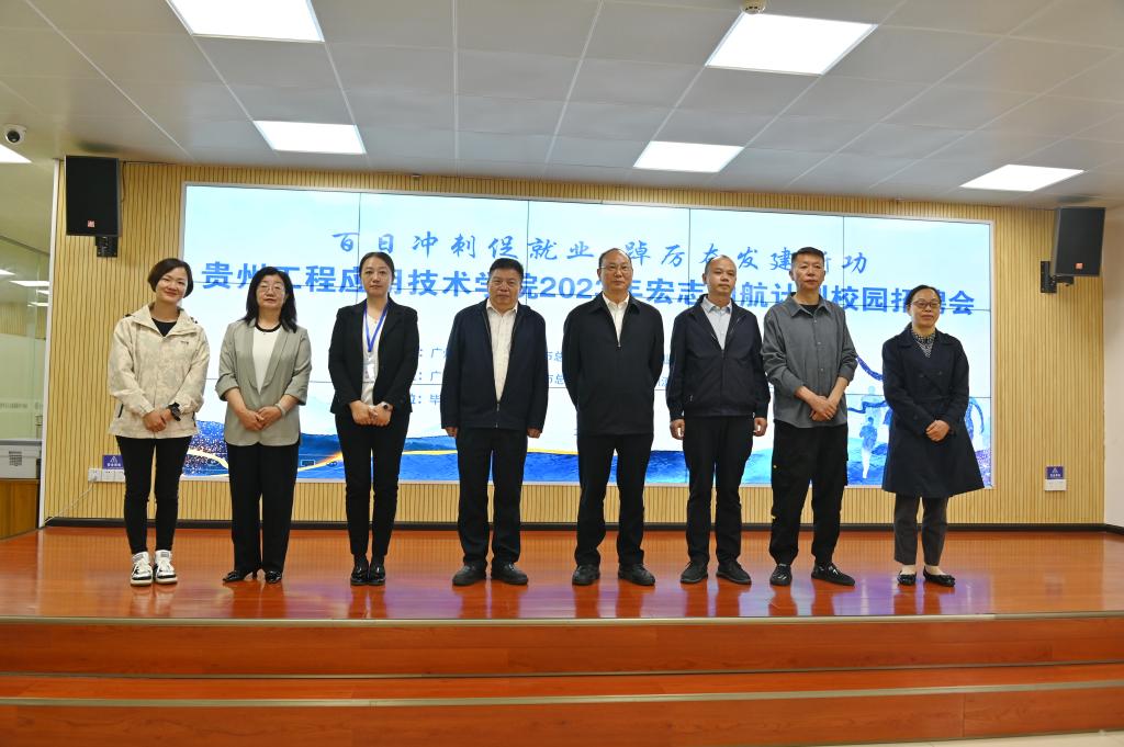 为贯彻落实党中央、国务院“稳就业、保就业”决策部署,全面推进就业“百日冲刺”和就业促进周工作,深化校政企合作,助力毕节试验区人力资源开发,5月22日,我校联合广州市总工会、毕节市总工会、毕节工商业联合会等单位在贵州工程应用技术学院创新创业园举办“百日冲刺促就业 踔厉奋发建新功-贵州工程应用技术学院2023年宏志助航计划校园招聘会”。广东省粤黔协作工作队广州工作组临时党总支副书记、 广州市总工会职工服务部一级调研员杨霁,鄂尔多斯伊金霍洛旗人力资源和社会保障局四级调研员李俊青,毕节市工商联党组成员、副主席曾友俊,毕节市总工会职工权益保障部部长蔡小军,贵州工程应用技术学院向贤礼出席启动仪式,相关部门负责人参加仪式。