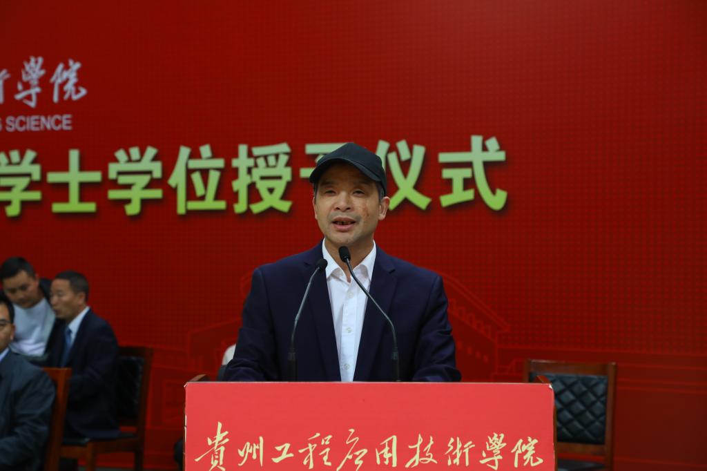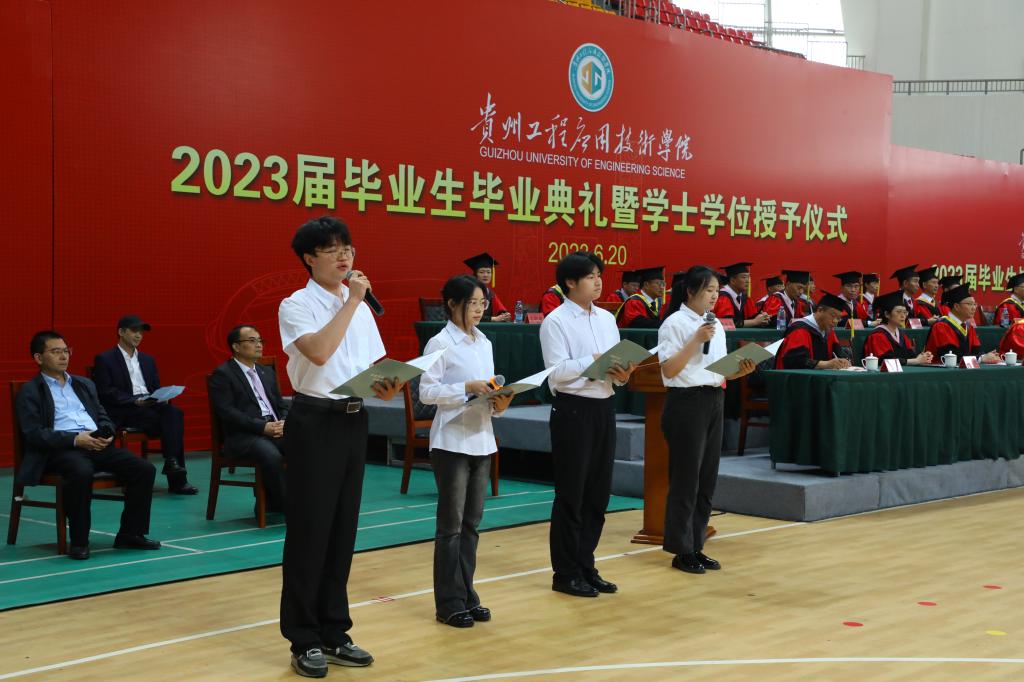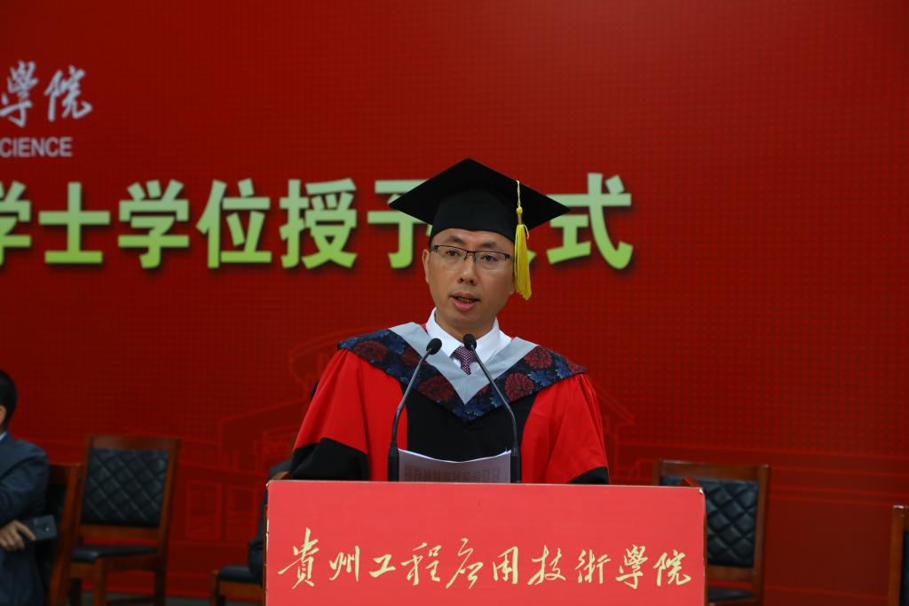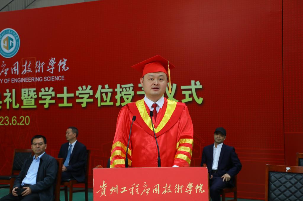 在庄严的仪式中,张嗣杰代表学校向顺利毕业的同学们表示热烈的祝贺和美好的祝福,向关心关爱同学们的成长和学校建设发展的校友和社会各界人士表示衷心的感谢。他和大家一起回顾同学们大学四年生活的点点滴滴和共同抗击疫情的三年。张嗣杰表示,过去四年,同学们在贵工程的菁菁校园里书写着贵工程学子自律自强感恩奋进的故事。他希望,今后同学们无论去往何方,都不要忘记母校,多关心母校的建设和发展,牢记母校是同学们最坚强的后盾,常回家看看!