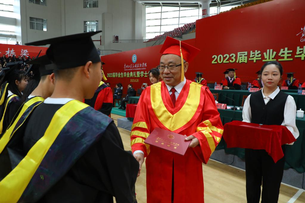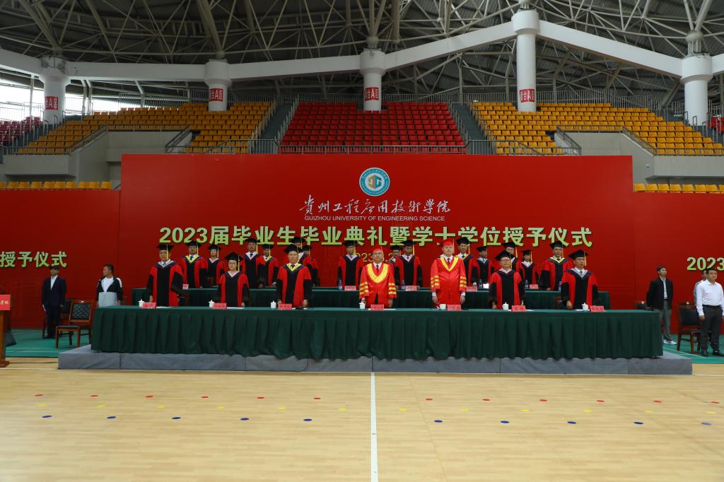 六月的贵工程万物葱茏,正是孕育收获和希望的季节。一曲骊歌唱响,数载情谊难忘;一段旅程挥别,新的征途踏上。6月20日上午,我校2023届毕业生毕业典礼暨学士学位授予仪式在绣山体育馆举行。学校党委书记令狐荣锋,党委副书记、校长张嗣杰,党委副书记向贤礼,党委委员、纪委书记郭永红,党委委员、副校长李琳、杨友昌、赵军,党委委员、宣传部(统战部)部长夏鲲出席典礼。学位评定委员会委员、各学院党政主要领导、各综合职能部门主要负责人、教师代表、航天物业公司代表、2023届毕业生以及部分非毕业生代表参加典礼。典礼由向贤礼主持。