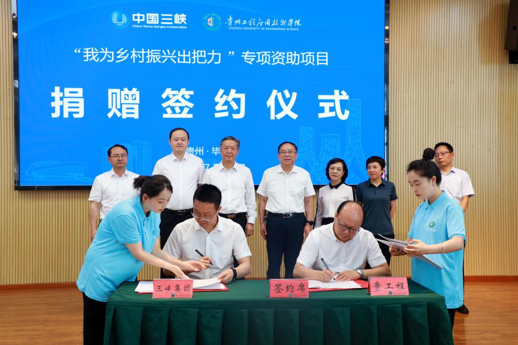 7月12日下午,“三峡集团—贵州工程应用技术学院‘我为乡村振兴出把力’专项资助项目” 捐赠签约仪式在贵州工程应用技术学院新时代青年讲习所隆重举行。中国长江三峡集团有限公司一级咨询杨骏、毕节市人民政府副市长万艳、贵州省农业农村厅二级巡视员石瑜等领导出席活动并讲话,中国长江三峡集团有限公司贵州分公司王锋(主持工作)副总经理和王荣刚副总经理一行、毕节市乡村振兴局、贵州工程应用技术学院校领导及各二级学院(部门)负责人参加活动。仪式由贵州工程应用技术学院党委副书记汤宇华主持。