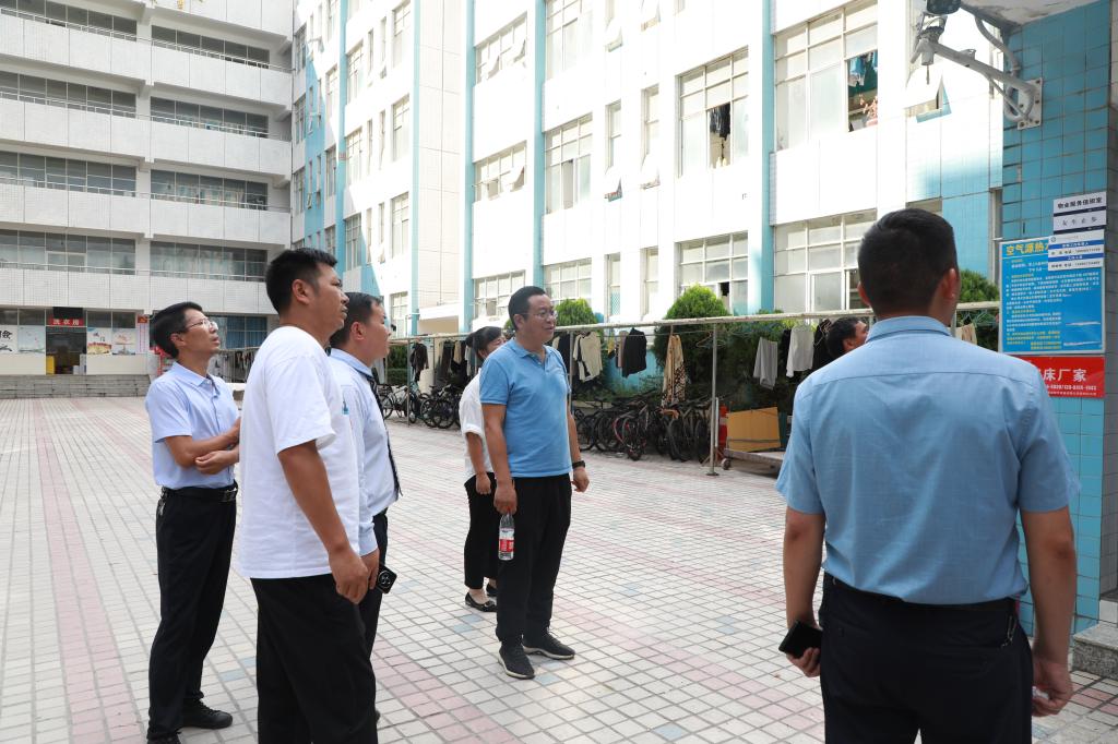 为深入贯彻落实全省教育系统 2023 年秋季学期开学工作部署会上的讲话精神,扎实做好学校新学期开学各项准备工作,确保学校顺利开学和师生健康安全,按照校长的指示要求,8月22日下午,我校党委委员、副校长赵军深入校园一线,实地走访调研,检查指导开学和迎新各项准备工作,后勤处、保卫处、学生处、人事处、基建处等部门及物管公司负责人陪同检查。