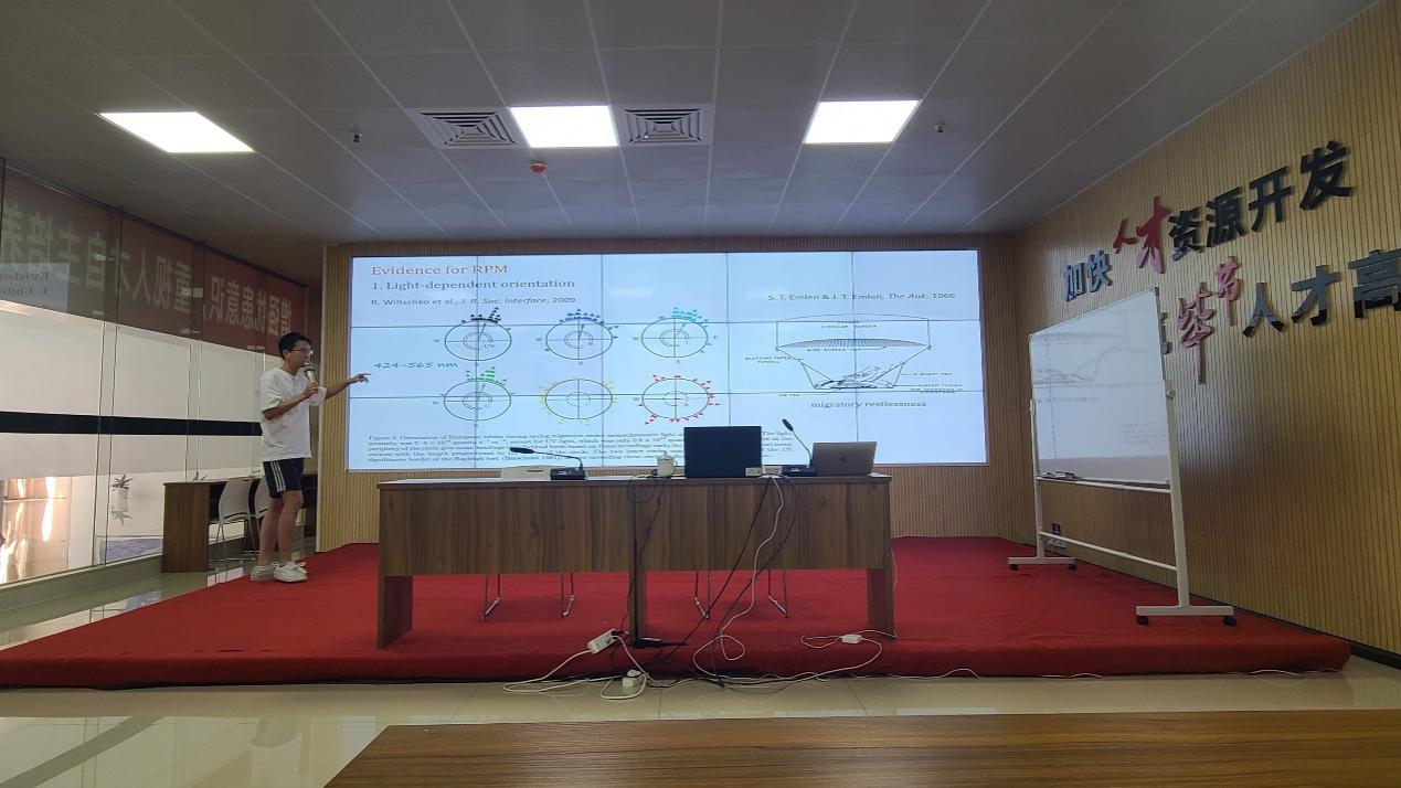 报告期间罗家特博士从鸟类迁徙过程的例子入题,引出一系列相关的科学问题,并从其科学研究的领域为鸟类迁徙过程如何辨别方向、如何精准定位地理位置等展开详细的阐述。并从学科基础知识解释了鸟类在迁徙过程中,地球磁场的作用下鸟类体内关键蛋白的表达作用机制,深入浅出地阐明了相关的反应过程以及在实验过程中提出的模型并进行验证。罗家特博士利用基本的理论知识以及前沿的研究手段为化学工程学院、理学院师生作了一场前沿而富有科学价值的学术报告,报告后师生踊跃发言,就自己在聆听报告过程中的疑惑或问题与罗家特博士进行了现场互动。