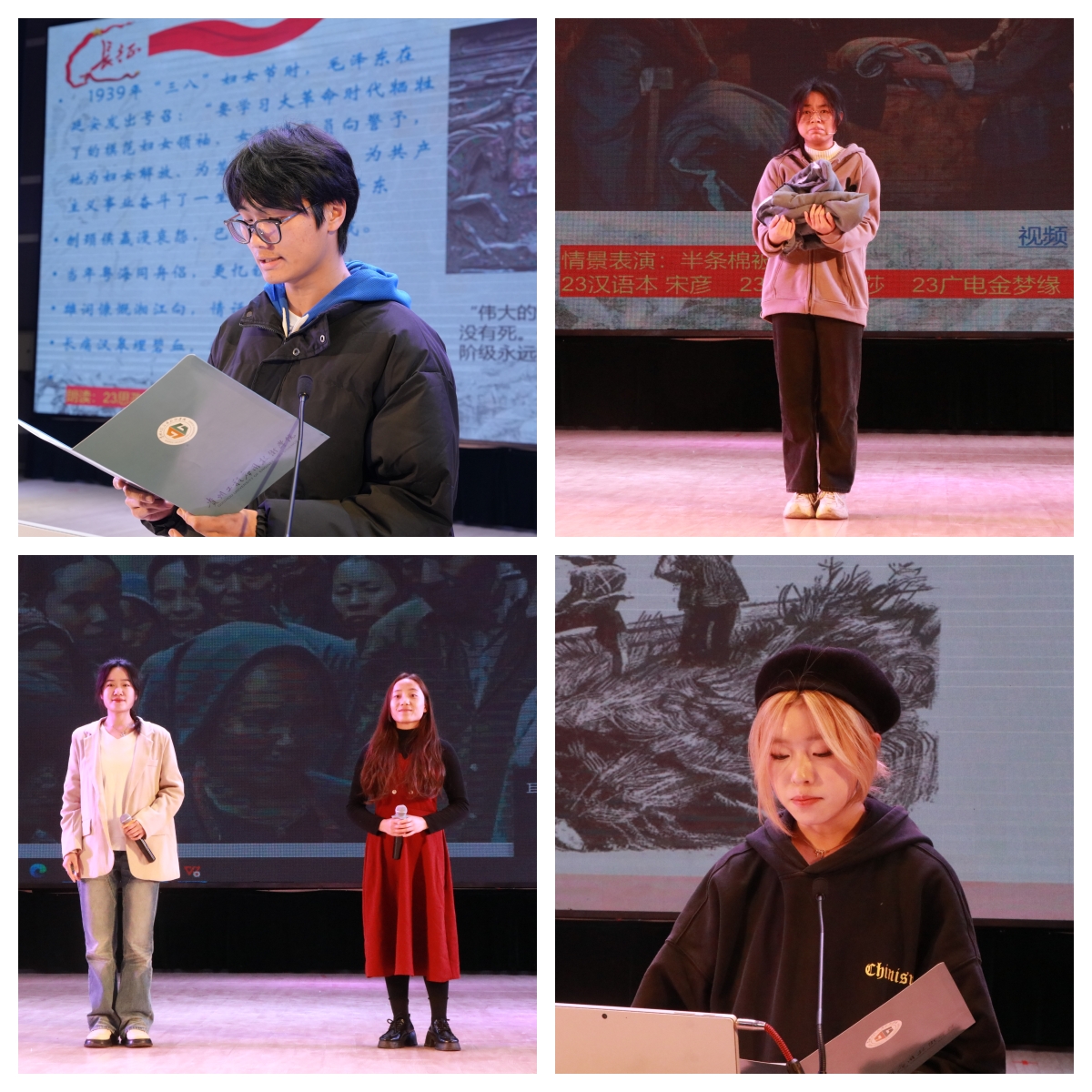 敢同男子竞春秋,巾帼英雄争一流。课堂上,汤宇华老师以革命战争年代中国共产党领导下的妇女解放运动以及中国妇女在中国革命历程当中的重大贡献、重大牺牲为线索,为师生开展了一场泪水与鲜血交织的历史讲述。高翩翩老师、王天鹅老师和彭雪莲老师则分别讲述了贵州最早的女党员蓝运臧、毕节妇女解放运动带头人熊蕴竹以及长征女红军的感人故事,礼堂里不时响起一阵阵经久不息的掌声。