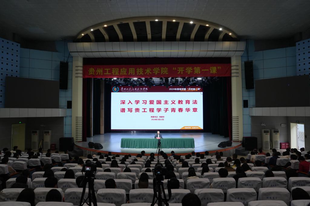 为加强新时代爱国主义教育,传承和弘扬爱国主义精神,根据《省教育厅办公室关于开展教育系统春季学期“开学第一课”的通知》要求,3月12日下午,我校党委书记肖建宗以“深入学习爱国主义教育法谱写贵工程学子青春华章”为题,在秋逸音乐厅为全校师生代表700余人讲授2024年春季学期“开学第一课”。