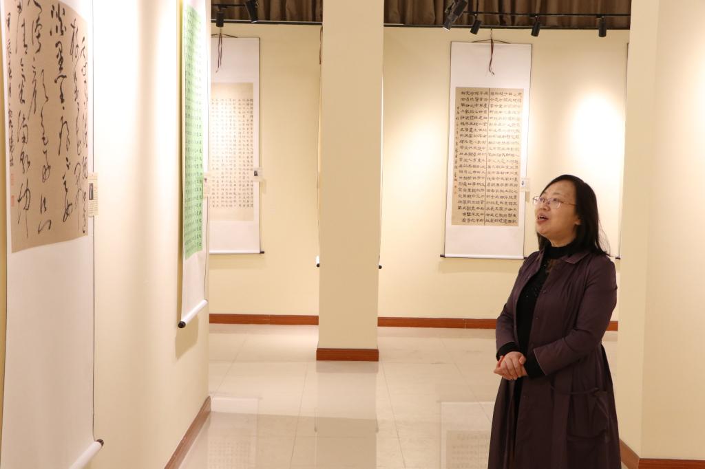 汉字书法之美,不仅在指腕之间,而且是呼吸,是养生,是身体的运动,是性情的表达,是做人处事的学问,是安定保佑的力量,最终成为与自己相处最真实的一种仪式。展览过程中,大家驻足欣赏,进行关于书法艺术的交流和研讨。本次展览有利于坚定文化自信,大力弘扬优秀传统文化,激励和鼓舞广大师生为实现中华民族伟大复兴的中国梦而不懈奋斗、努力工作、刻苦学习,创作有思想、有温度、有内涵的书法作品。