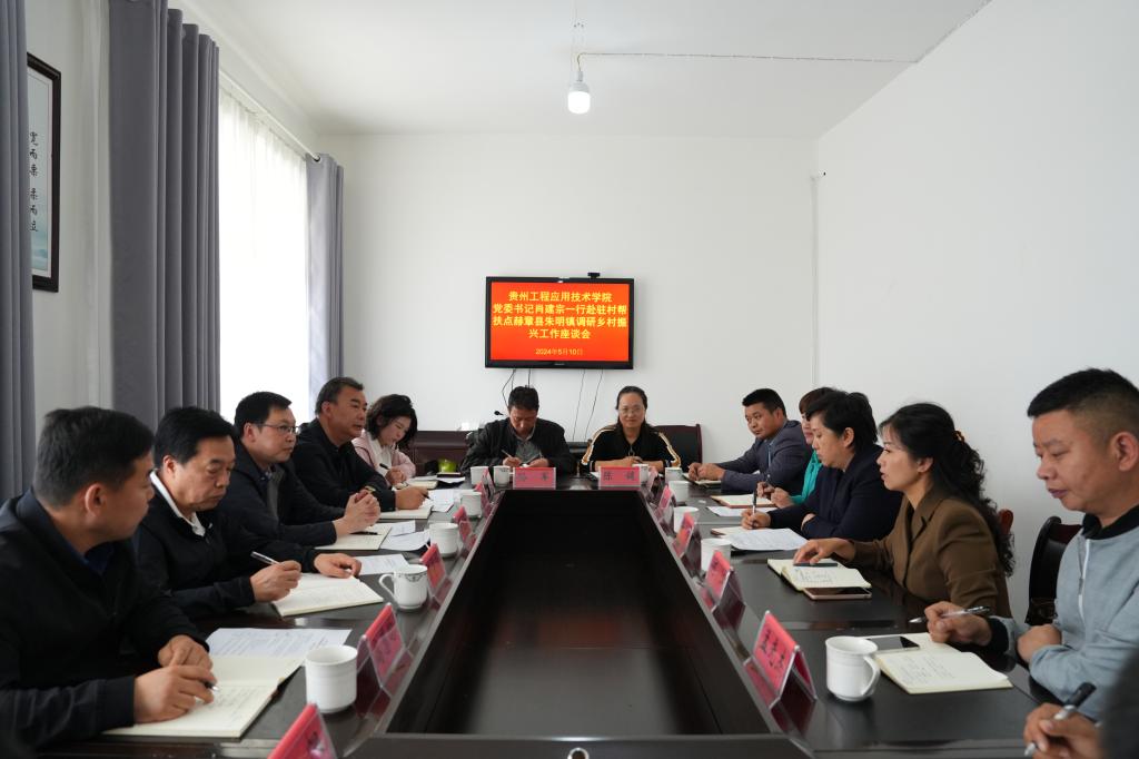 5月10日上午,我校党委书记肖建宗、党委副书记汤宇华在我校党政办、组织部、宣传部相关人员的陪同下,前往学校乡村振兴工作联系点赫章县朱明镇调研指导,并看望慰问我校选派驻村干部。赫章县政协主席安玲,赫章县政协经科委主任陈大芬,朱明镇党委书记何江,朱明镇党委副书记孟光杰及朱明镇相关部门负责人,我校驻村第一书记陈臣、陈健、孙军、驻村干部陈礼印参加座谈会,座谈会由我校党委委员、组织部部长陈兴才主持。
