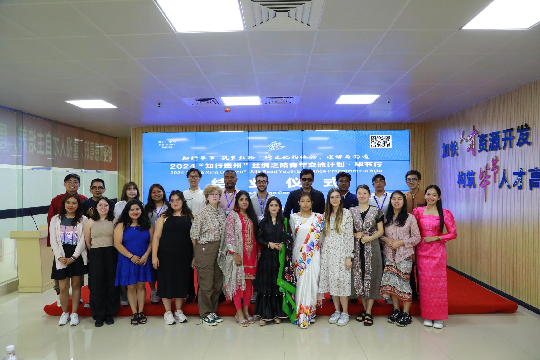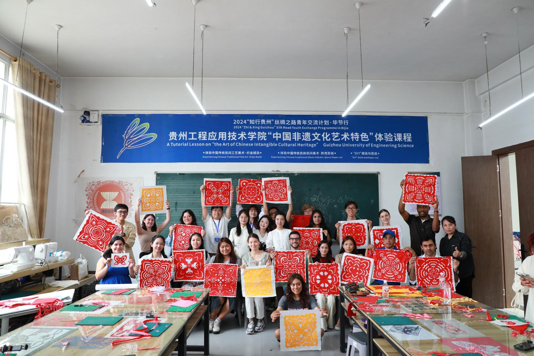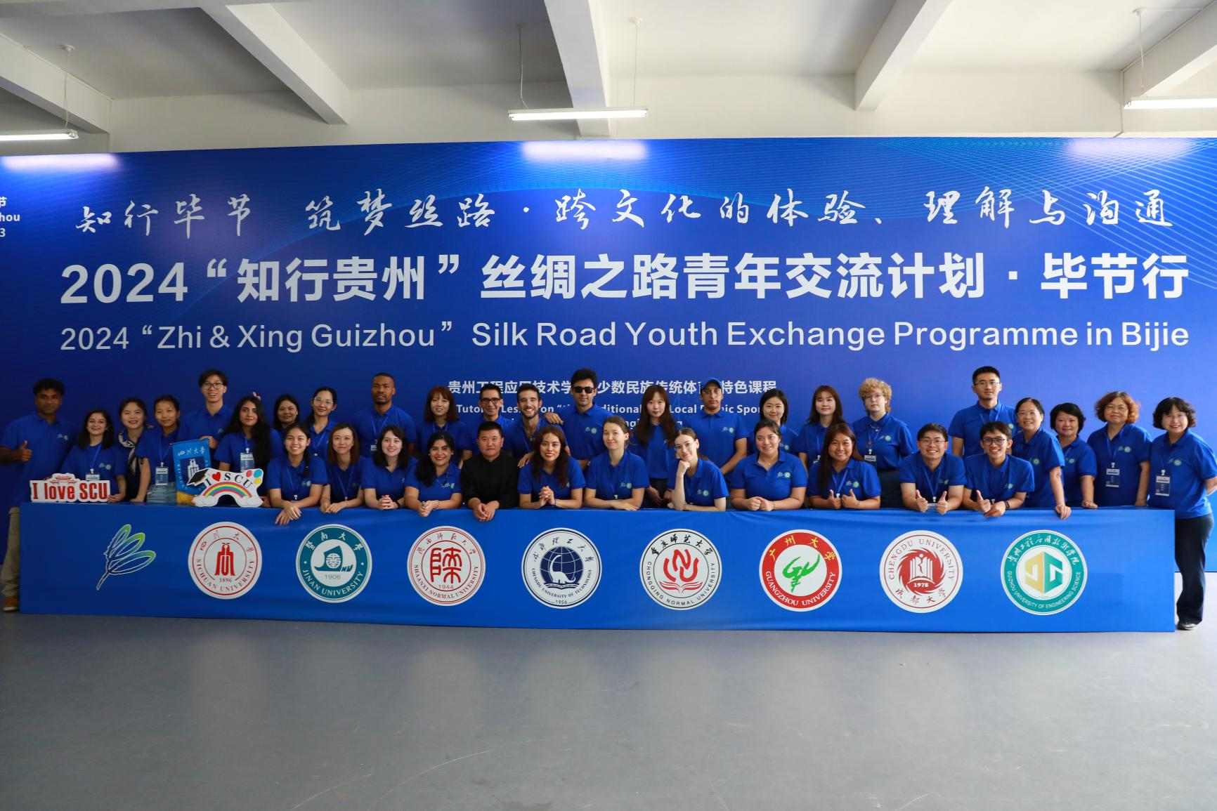 7月2日-7月5日,2024年“知行贵州”丝绸之路青年交流计划·毕节行在贵州工程应用技术学院举行。活动以“知行毕节 筑梦丝路——跨文化的体验、理解与沟通”为主题,来自四川大学、成都大学、成都理工大学、暨南大学、广州大学、重庆师范大学、陕西师范大学7所高校,俄罗斯、哈萨克斯坦等13个国家的23名国际青年参加交流活动。中外青年在沉浸式体验、特色课程中体悟“知行合一、天人合一”的贵州人文精神;体验秀丽的山川风物、淳朴的风土人情、多彩的民族文化、美味的特色饮食。少数民族传统教育体育、毕节市博物馆(城市发展历史)、中国彝风——奢香博物馆、贵州宣慰府、奢香古镇(社区体验)以及中国非遗文化艺术(蜡染、剪纸)等课程给中外青年留下深刻印象。“知行贵州”项目为中外青年搭建起教育合作和人文交流的沟通平台,增进各国青年之间沟通和友好交流,讲好贵州故事、丝路故事和毕节篇章。
