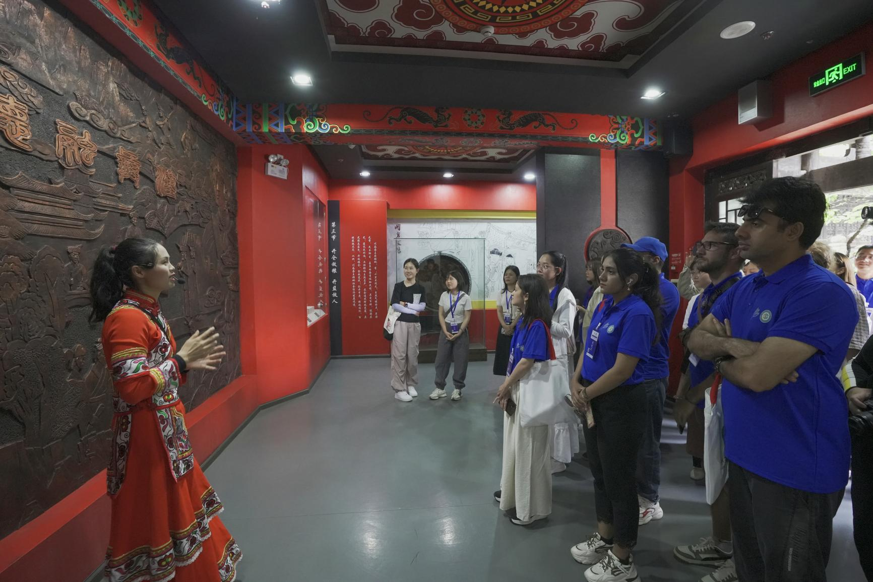 活动期间,民族传统教育体育课程老师伍西安精彩展示和讲解,让中外青年进一步了解少数民族传统体育运动的基本理论与知识,感受少数民族传统体育魅力;城市发展历史授课老师漆梦实带领中外青年观藏品,讲历史,感受城市发展历史文化的魅力和厚重。奢香夫人的丰功伟绩让中外青年赞叹不已。