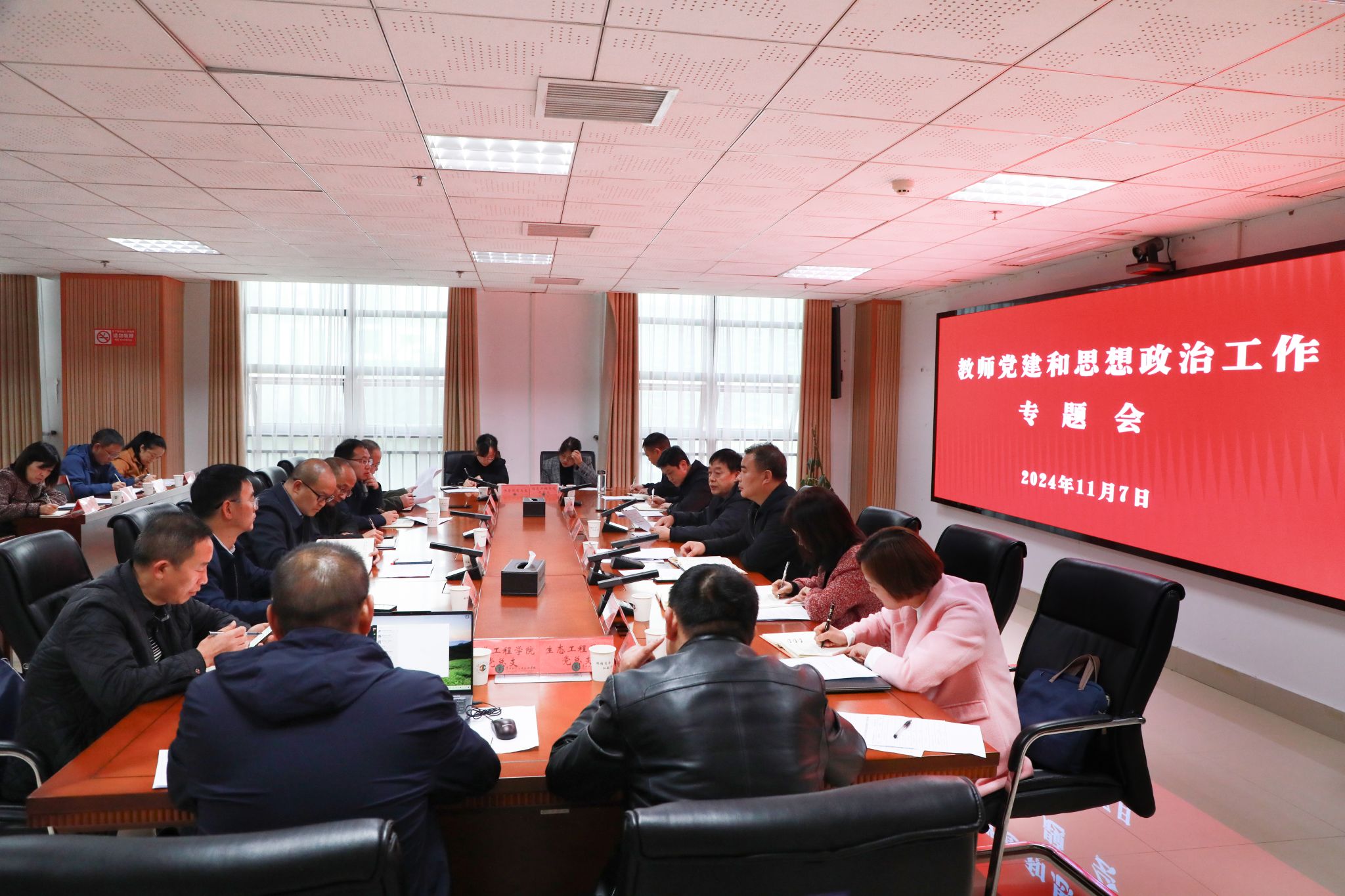 陈兴才带领与会人员审议学校党委贯彻落实《关于强化思想政治引领 切实加强和改进在高校青年教师中发展党员工作的若干措施(试行)》任务分解表(征求意见稿);研究调整二级学院党总支2024年度发展党员工作计划及2025年度发展党员计划制定工作;安排部署2025年度学校发展高层次人才、青年教师党员有关工作、2024年度党建工作成效考核有关工作、2024年党建基层党组织活动经费使用、各学院党总支党建工作品牌创建工作以及2025年度基层党组织活动经费预算等工作;夏鲲对学校教师思想政治教育工作做了工作提示,要求各部门、学院强化理论学习、营造良好校园氛围、加强教师教育教学管理等方面抓好教师思想政治教育工作,提升教职员工的凝聚力、向心力、认同感。