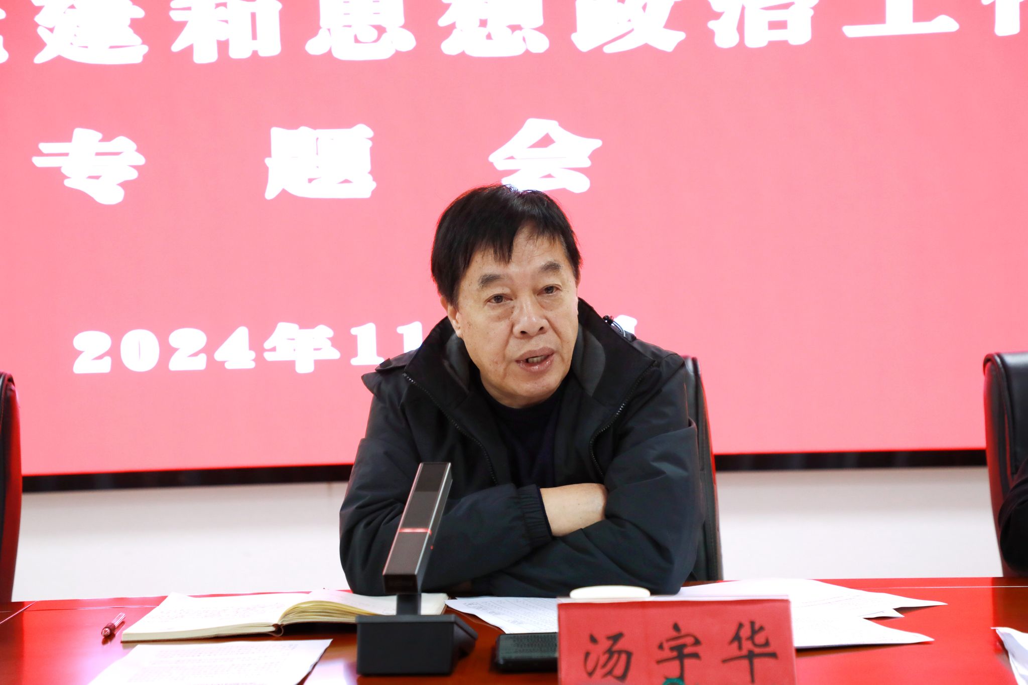 汤宇华结合当前和今后一个时期教师党建和思想政治工作重点工作任务,从三个方面作了安排和部署:一是要注重理论学习。只有通过不断学习、思考和实践,才能提升政治站位,深刻反思自身存在的不足,明确短板所在,才能有计划地规划好自己的教育教学工作,坚守初心,做教育的追光者。当前,学校积极贯彻落实习近平总书记关于建设文化强国的指示,致力于全面提升思想引领力、精神凝聚力、价值感召力和国际影响力;二是要严守底线。要加强底线意识,强化思想政治工作,确保围绕教育教学开展党建工作;要以党建引领教育教学质量的提升,使党建工作真正成为推动学校高质量发展的强大动力;要坚守师德师风、安全及意识形态风险等底线,通过扎实地做好日常工作,确保党建的影响力渗透到每一位党员心中;三是聚焦聚力,确保教师党建思想政治工作成为推动学校高质量发展的强大动力;通过强化基层党组织的示范建设,增强基层党支部的战斗力,充分发挥其战斗堡垒作用和党员的先锋模范作用;要以思想建设为核心,发挥凝心聚力的作用,加强党建工作的思想引领力。
