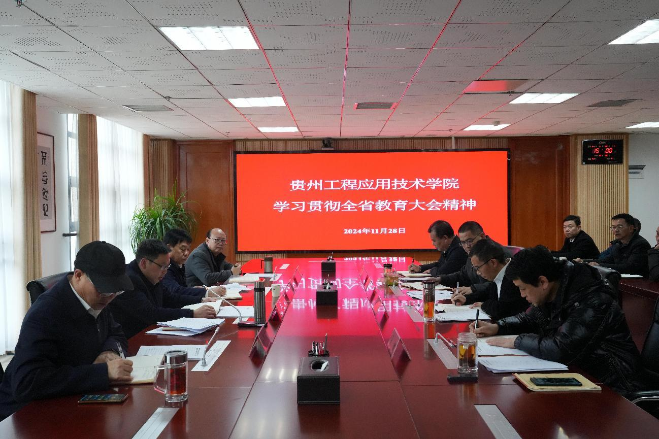 全省教育大会在贵阳召开,为全面落实全省教育大会精神,加快推进学校内涵建设和高质量发展。11月28日下午,我校在西区综合楼802会议室传达学习贯彻全省教育大会精神,党委书记肖建宗主持并讲话。
