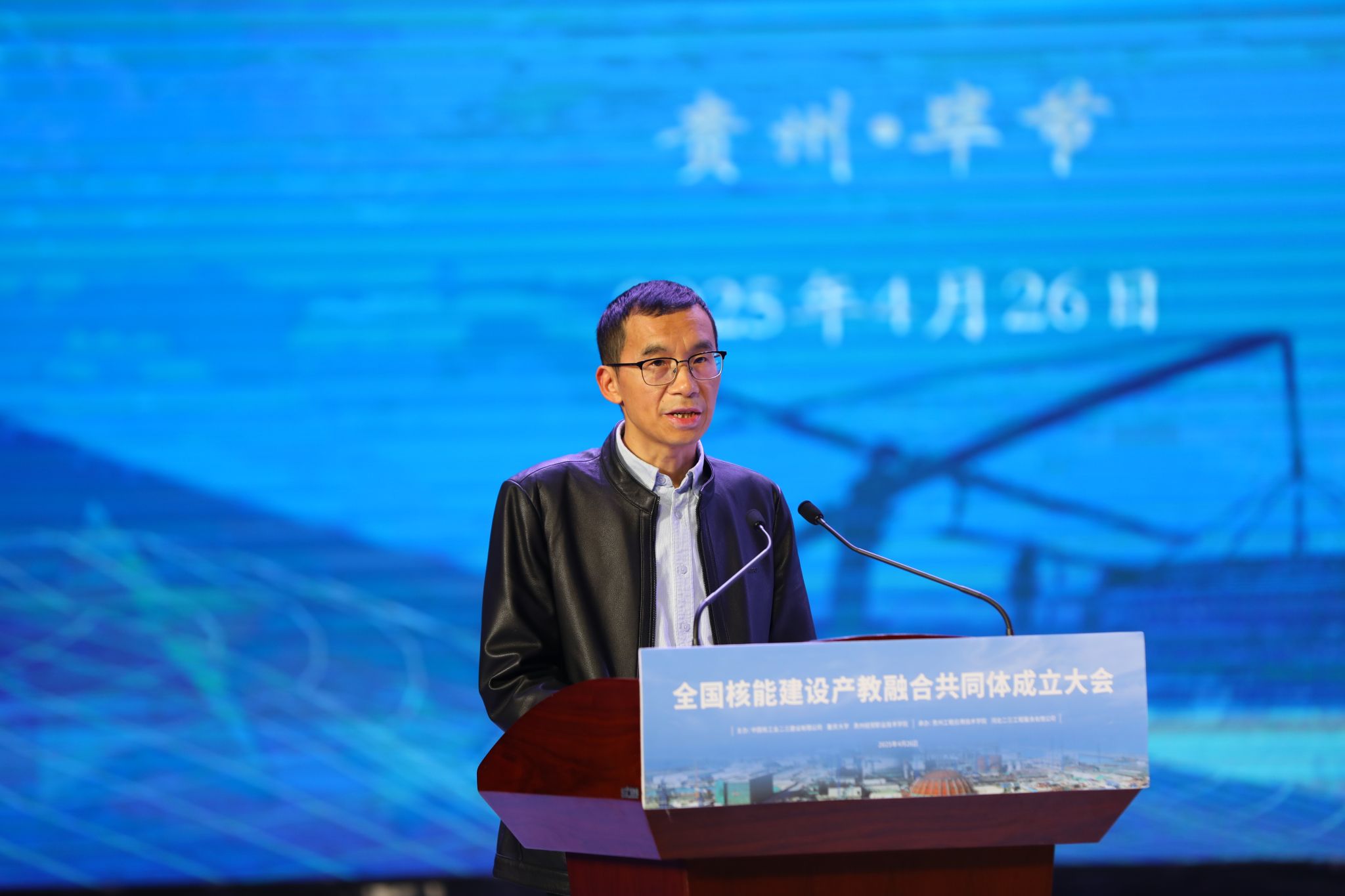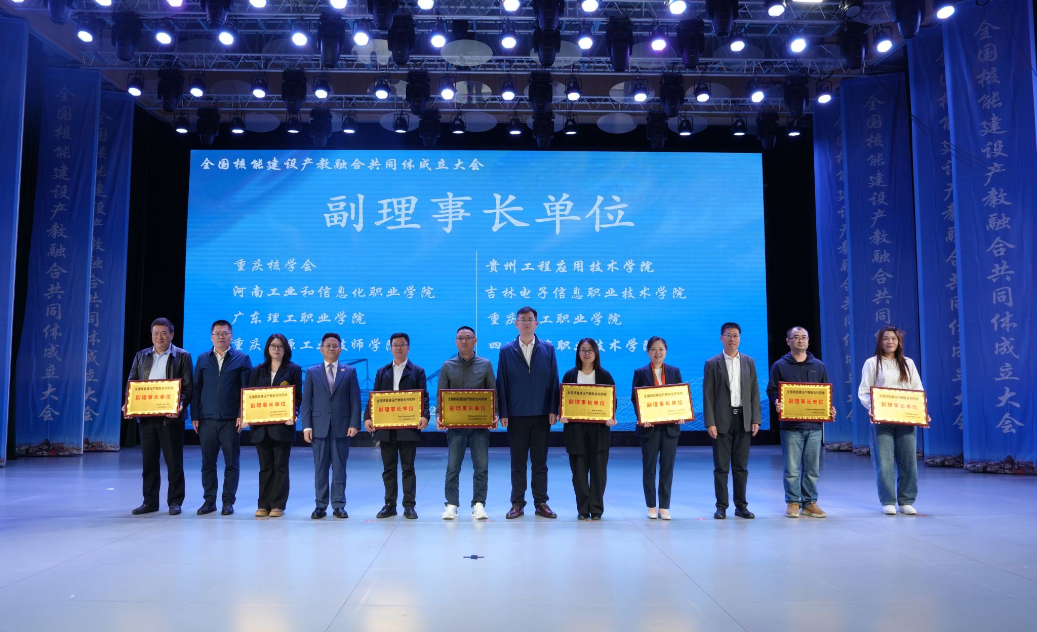 4月25日下午,全国核能建设产教融合共同体成立大会在我校召开。中国核工业二三建设有限公司工会主席徐涛,重庆大学材料科学与工程学院副院长陈厚文,贵州经贸职业技术学院党委副书记、院长黎元波,重庆师范大学党委常委、副校长孟小军,广元中核职业技术学院党委副书记、校长蒋杰,贵州开放大学党委委员、副校长周勇,河北二三工程服务有限公司董事长郑维,我校党委委员、副校长陈昌禄出席大会。