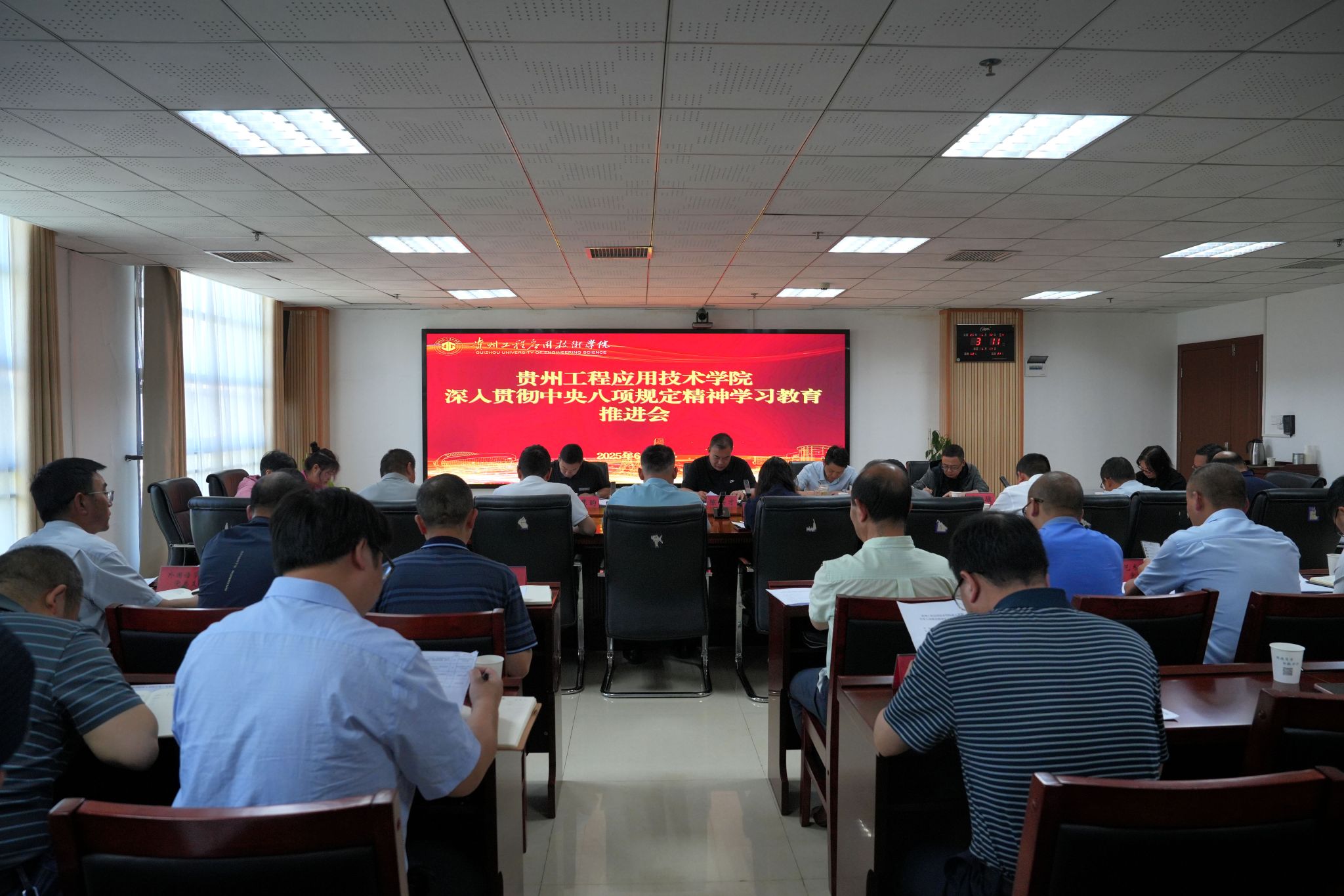 6月12日上午,我校召开深入贯彻中央八项规定精神学习教育工作推进会。学校党委委员、组织部部长陈兴才主持会议。