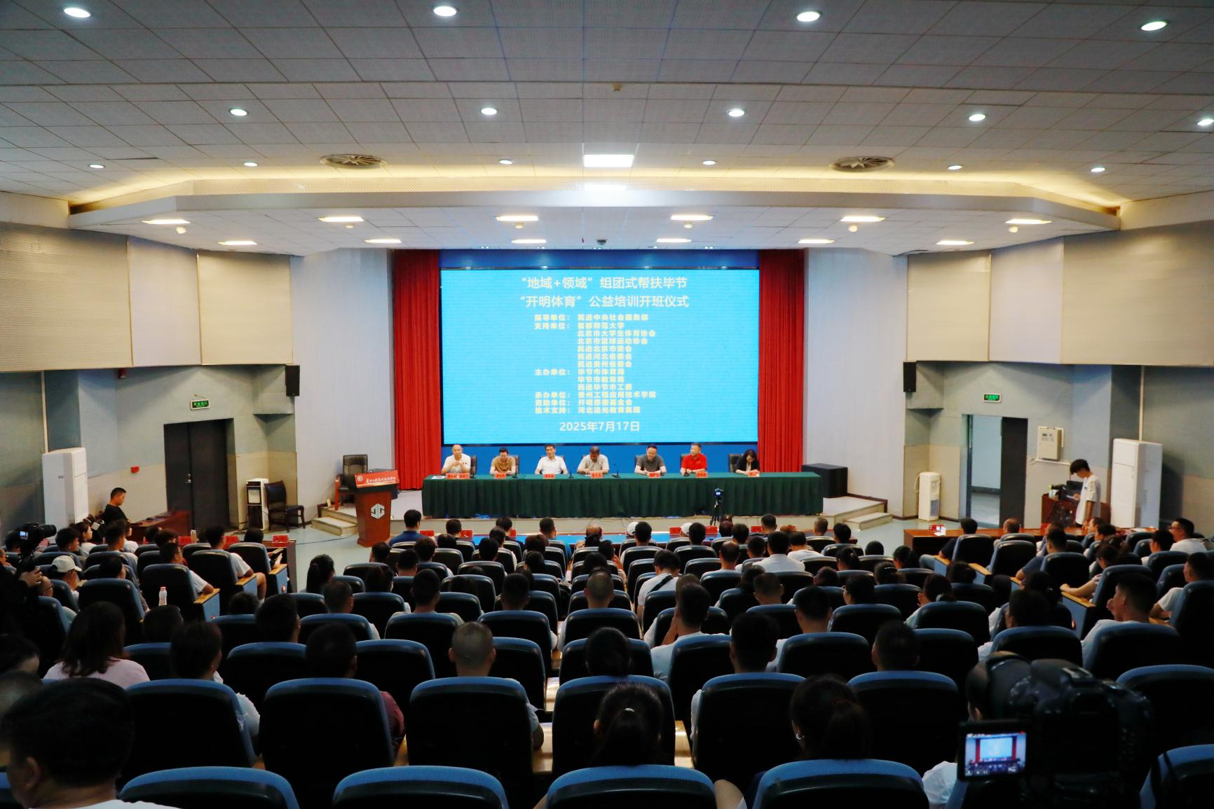 7月17日上午,民进中央社会服务部“地域+领域”组团式帮扶毕节体育培训开班仪式在我校举行,民进中央社会服务部副部长李长青,北京市大学生体育协会主席郝光安,首都师范大学体育教学研究部党总支书记田士合,我校党委副书记、校长张嗣杰,党委委员、副校长饶萍出席开班仪式,开班仪式由毕节市体育局党组书记薛占润主持。