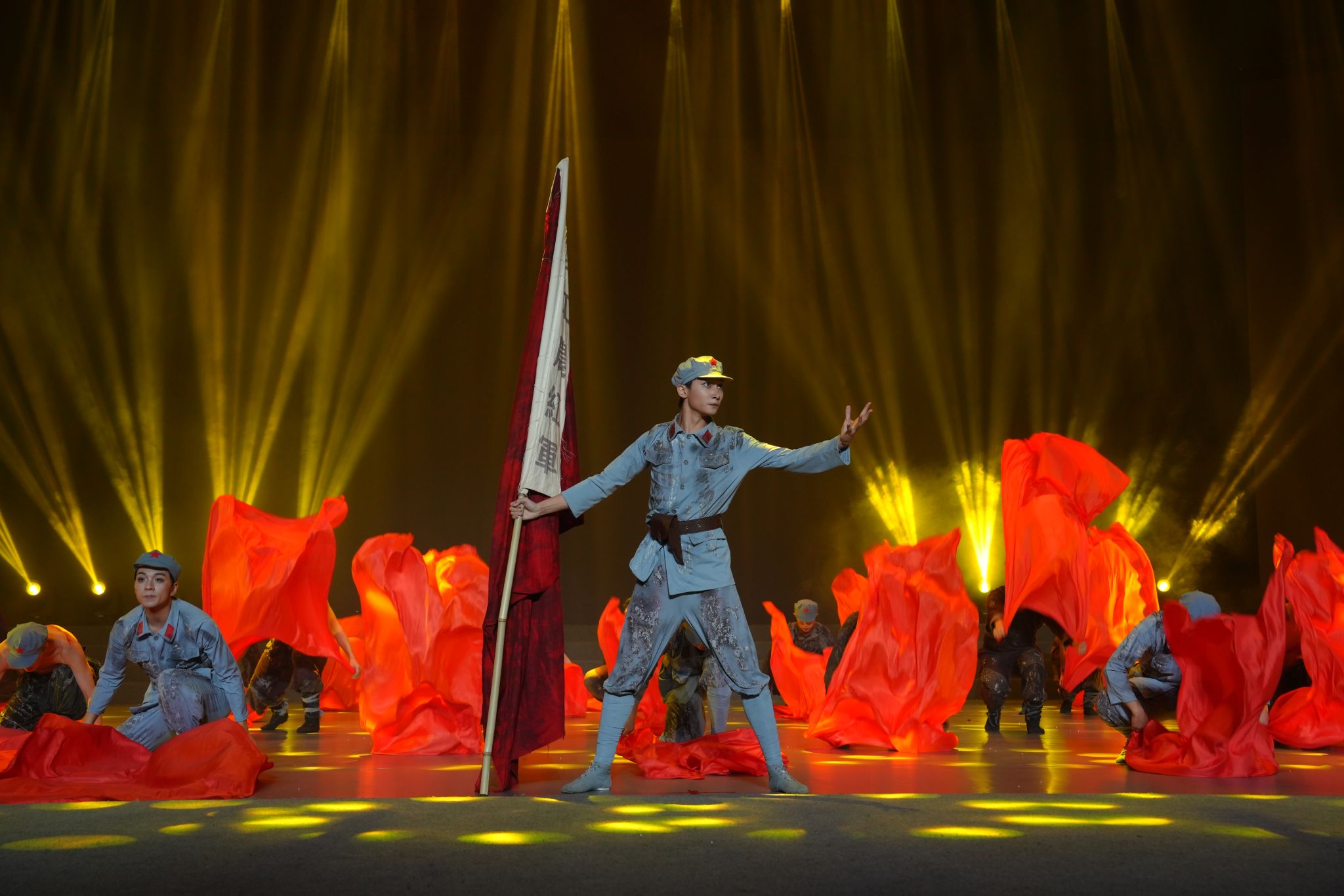 在颁奖仪式现场,我校艺术学院创作的舞台剧《赤水乌蒙红飘带》(片段)作为优秀作品受邀展演。伴随着激昂的音乐声,演员们身着具有时代特色的服装登场,生动再现了红军长征途经贵州的艰难岁月,重现地下党员林青不惧艰险支援革命的感人故事;该剧目以精湛的表演艺术还原红色历史,融入地方民族元素,兼具思想深度与文化底蕴,细腻的情感表达与紧凑的剧情设计让现场掌声不断,将颁奖仪式的氛围推向高潮。这部作品不仅展现了学校艺术创作的高水平,更传递了深刻的精神内涵,赢得了在场嘉宾的一致好评。