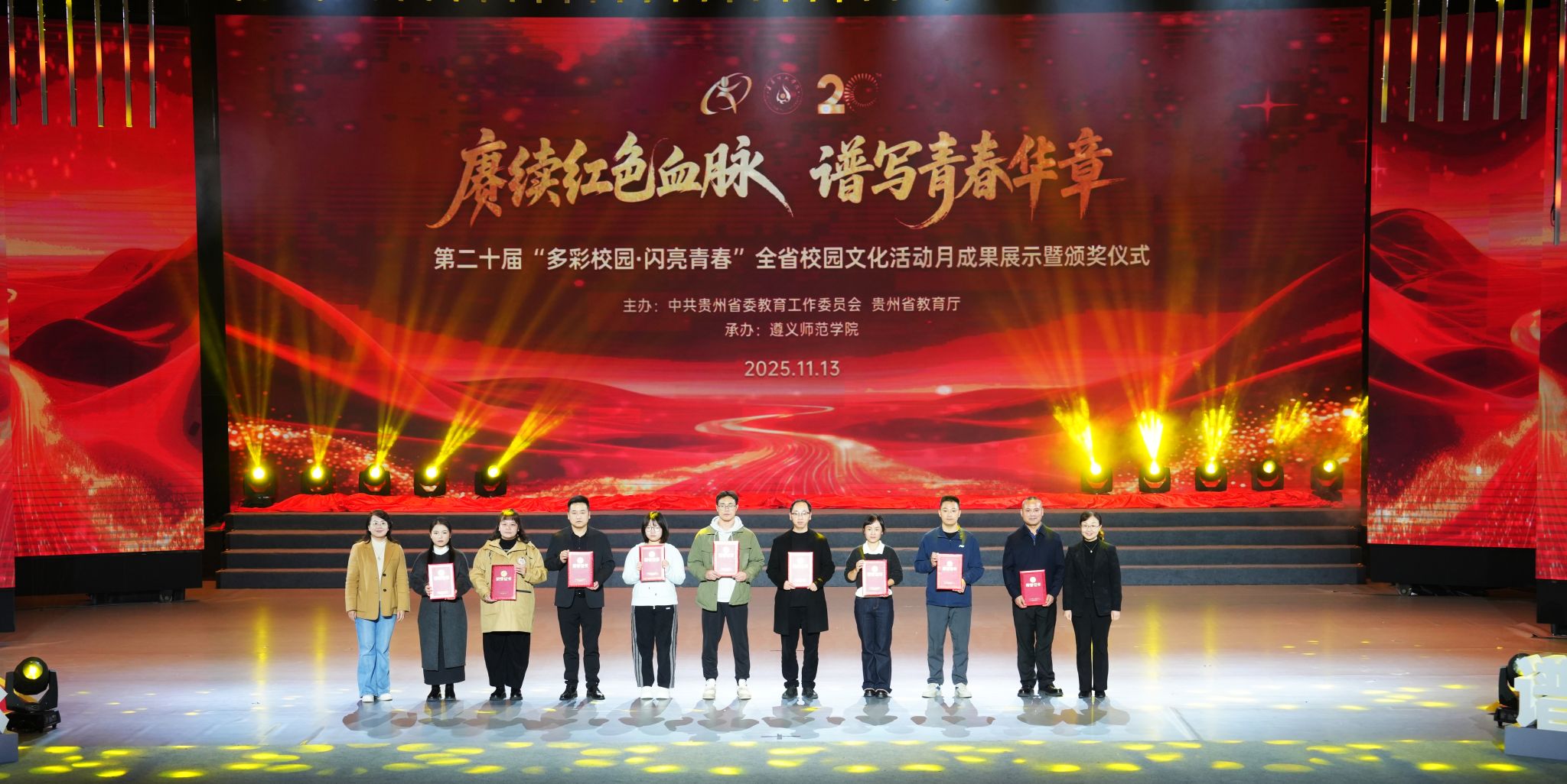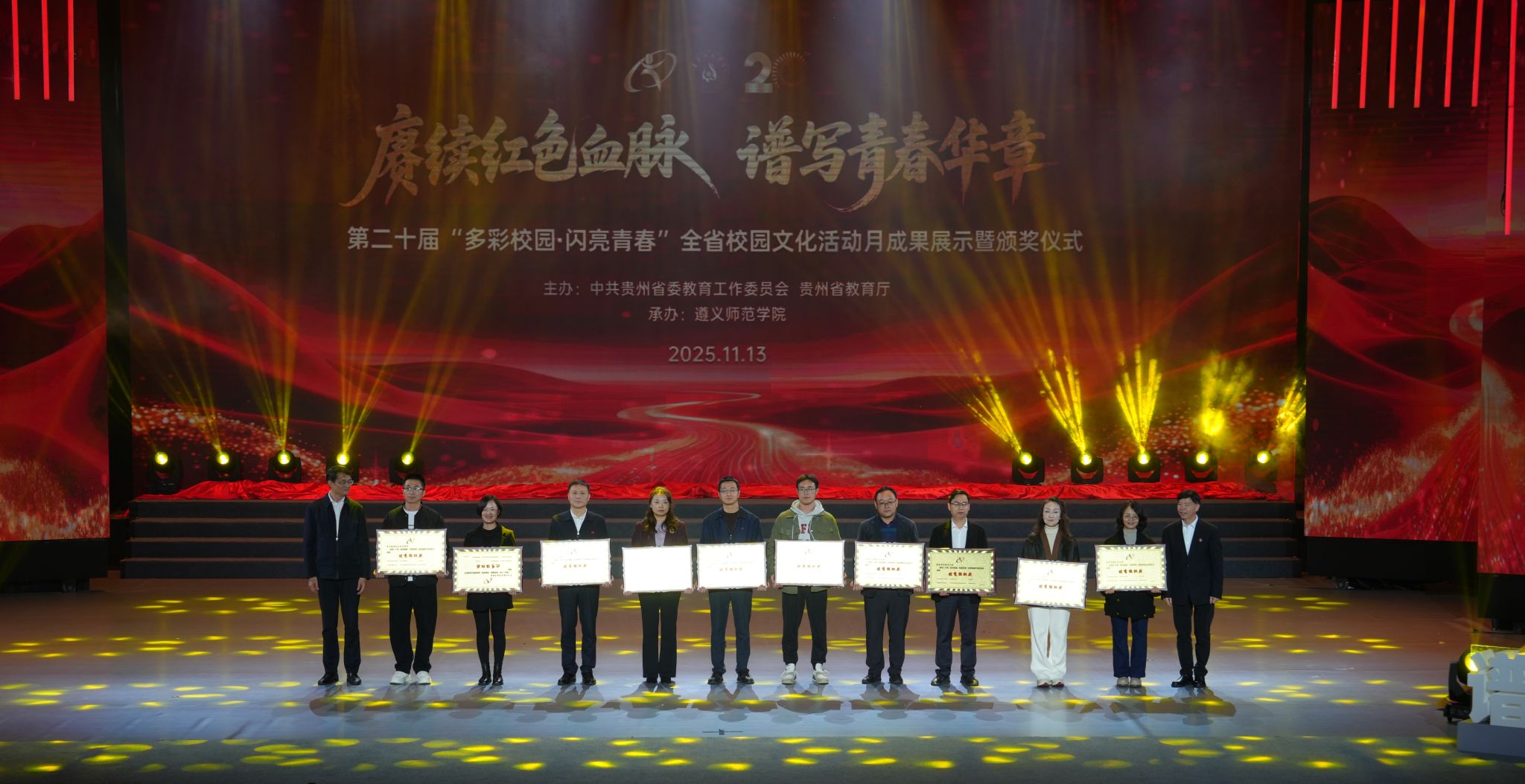 近日,由中共贵州省委教育工委、贵州省教育厅主办的第二十届“多彩校园·闪亮青春”全省校园文化活动月成果展示暨颁奖仪式在遵义师范学院举行。我校党委副书记王春华应邀出席,并带领相关部门负责人参加活动。仪式汇聚了省委教育工委相关部门、各市(州)教育工委、各高校的领导及获奖师生代表。