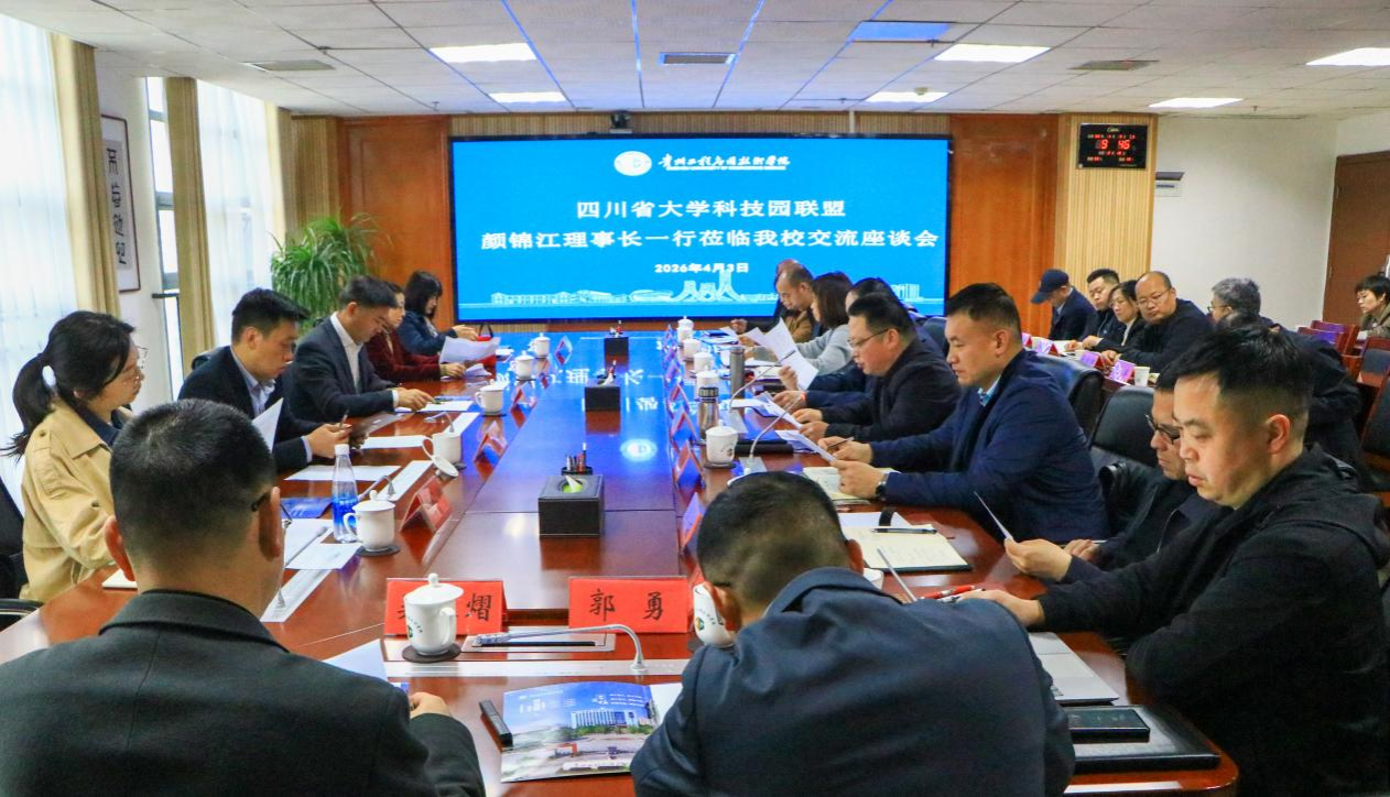 为深化川黔两地高校科技园交流合作,推动产学研协同发展,4月3日上午,四川省大学科技园联盟理事长颜锦江一行来我校开展交流座谈,座谈会在西区综合楼802会议室举行。四川省大学科技园联盟理事长、四川大学商学院教授及博士生导师、资产管理处处长颜锦江,四川省大学科技园联盟秘书长、四川大学科技园战略决策研究室主任陈丽莉,我校党委副书记、校长张嗣杰,副校长王毓出席会议,学校相关职能部门及各学院负责人参加会议。会议由王毓主持。